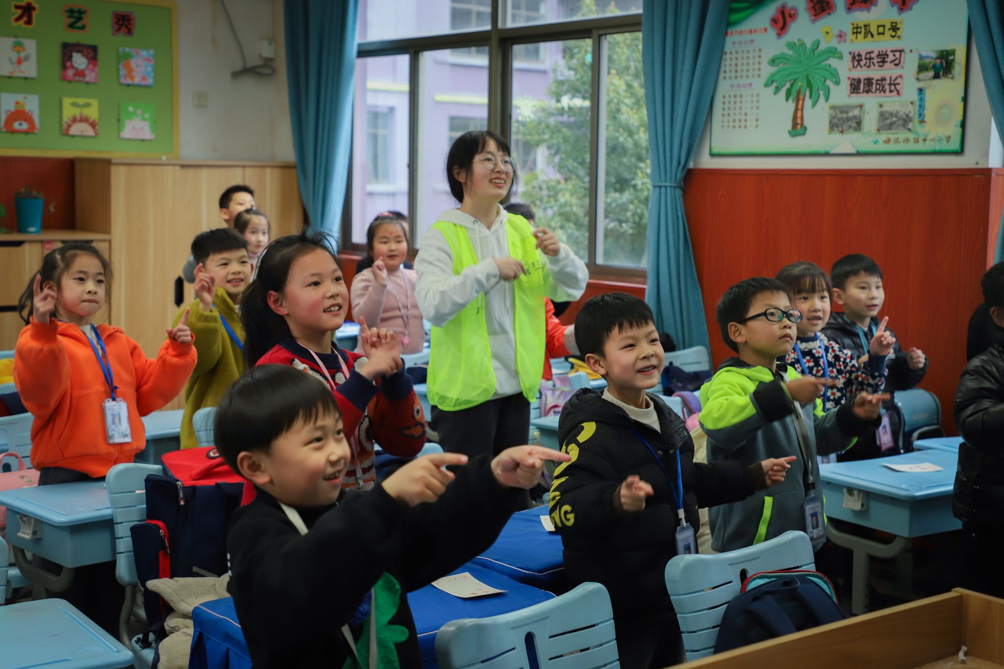 授牌签约仪式后,树人实践“薇”课堂第一课正式开讲,小讲师们纷纷走上讲台,带领紫薇学子们遨游在“汉字王国”里。树人实践“薇”课堂讲师团是在管理学院分团委指导下,由学生党员、入党积极分子、共青团员、学生干部等组成的专属志愿者服务队伍,每周五下午对紫薇小学一、二年级学子进行课堂讲授,课程主要覆盖红色思想引领、传统文化传承、艺术才能培养、劳动技能提升、心理团体辅导、趣味体育锻炼等多个模块,为紫薇小学的学子们带来多彩的课程,点亮他们的童年,助力他们的成长。