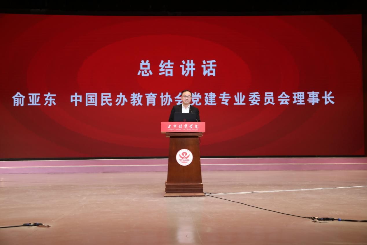 中国民办教育协会党建专委会理事长(教育部思想政治工作司原一级巡视员)俞亚东作会议总结。他表示,党建专委会成立一年以来,在中共中央组织部、教育部和有关部门的领导的指导下,在各级各类民办学校的支持配合下和各位副理事长、常务理事、理事的团结协助的努力下,做了以下几点工作:一是加强政治建设,提高政治站位。二是聚焦重点、难点,深入开展专项研究。三是开展调查研究,集结力量推动研究深入。四是深化研讨推进工作融合。五是完善规章制度,加强内部建设。他强调:专委会组织本次会议,旨在通过学习习近平总书记关于教育的重要论述、最新论述和重要回信精神,交流展示民办教育党建和思想政治工作成果。他希望,通过学习交流,各级各类民办学校进进一步加强党的建设,以高质量党建引领民办教育高质量发展,为建设教育强国作出民办学校应有的更大贡献。