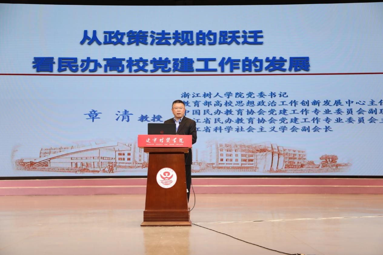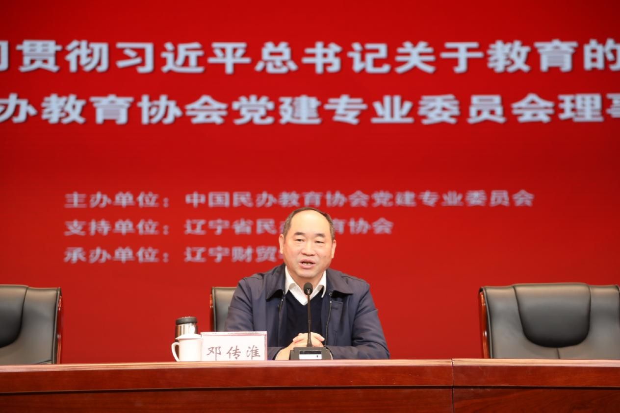 为深入学习贯彻习近平总书记关于教育的重要论述、最新论述和重要回信精神,11月9日-11日,由中国民办教育协会党建专业委员会主办、辽宁财贸学院承办的全国民办学校学习贯彻习近平总书记关于教育的重要论述研讨会暨中国民办教育协会党建专业委员会理事会全体会议在辽宁葫芦岛举行。会议由中国民办教育协会党建专业委员会理事长俞亚东主持。教育部政策法规司司长邓传淮、发展规划司副司长田福元、思想政治工作司副司长余先亭、中国民办教育协会刘林、秘书长贾伟等领导出席会议。中国民办教育协会党建专业委员会理事,部分民办学校党委书记、校长、董(理)事长等300余人参会。今年会党委书记章清出席会议并作了大会交流发言,党校办、创新发展中心有关人员参加会议。