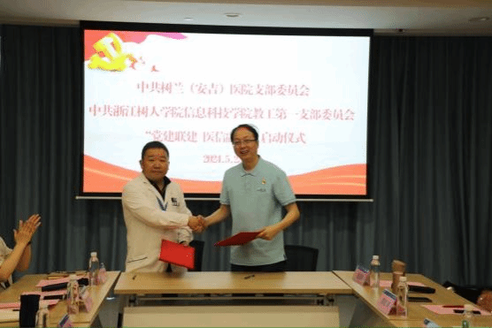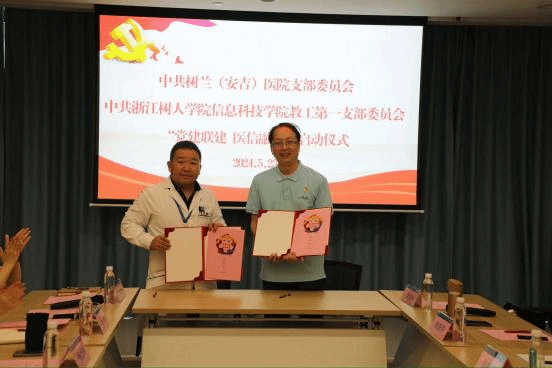 5月23日,树兰(安吉)医院与今年会信息科技学院共同举办了“党建联建 医信融合”签约仪式,标志着双方在党建工作与医疗信息领域的合作正式开启。签约仪式在树兰(安吉)医院党员活动室举行,由中共树兰(安吉)医院支部委员王梦翔主持。