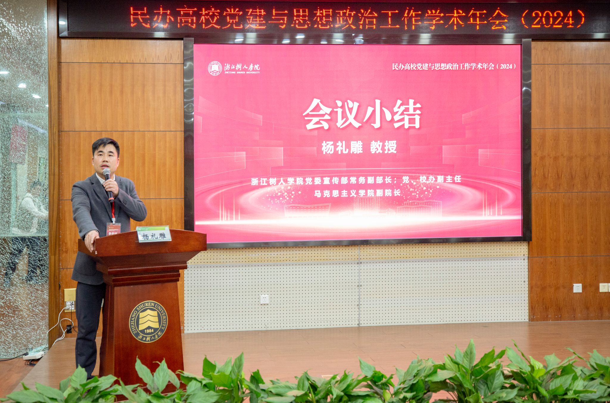 校党委宣传部常务副部长杨礼雕在会议小结中表示,本届年会会议议程紧凑,内容丰富,成果丰硕,并希望大家今后继续发扬本次年会的学术精神,不断加强交流与合作,共同开创民办高校党建与思想政治工作的新局面。