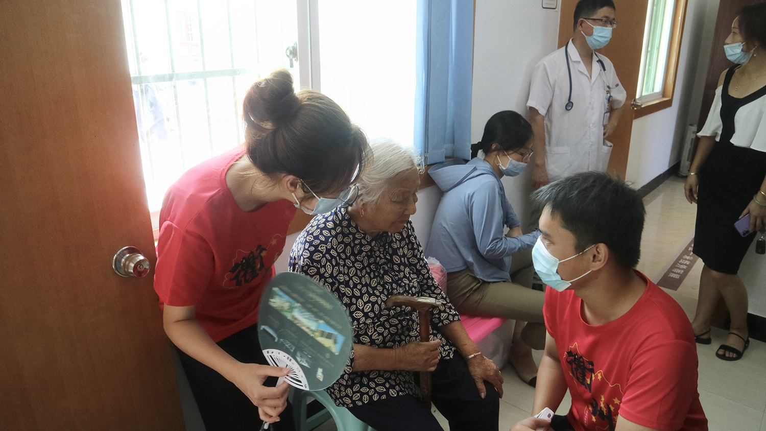 积极响应国家号召,做好新冠疫苗接种工作,实践团学生们在田畈村妇联主席的带领下来到了何田乡卫生院进行指引村民接种疫苗的志愿者工作,帮助村民完成疫苗登记到接种的全过程。在接种的过程中,一位87岁老奶奶频频对学生志愿者感叹:“中国共产党好呀,要是没有共产党,我连疫苗都打不上!”老奶奶的一番话让实践团学生们深受感动。