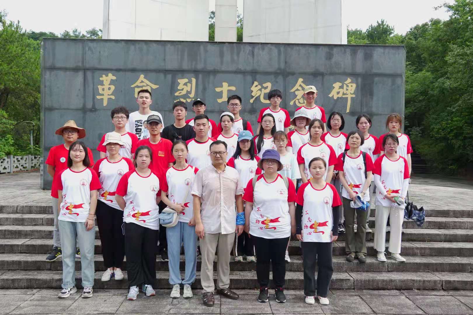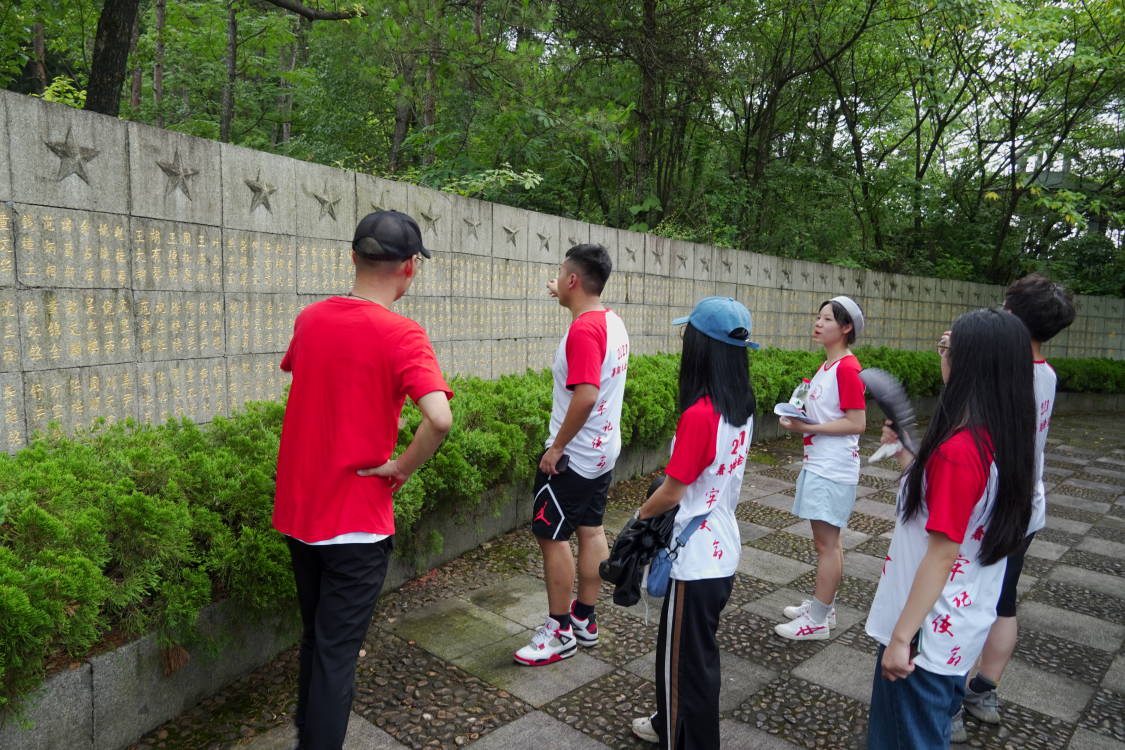 最后一站我们来到了兰溪革命烈士纪念馆。兰溪作为革命老区坐落于兰阴山,自大革命开始便是英雄人物辈出的地方。位于半山腰的兰溪革命烈士纪念馆和纪念碑在苍松翠柏的映衬之下,显得格外庄严肃穆,似乎在诉说着兰溪革命斗争往事。怀着无比崇敬的心情,小分队成员一行五人,分别是徐振毅、杨庭嘉、叶子恒、张诗怡、袁桂丽,在指导老师袁忠海的带领下,不畏雨水打湿衣衫,不惧汗水浸透身体,“挺进”兰阴山中,向心中的精神圣地进发。