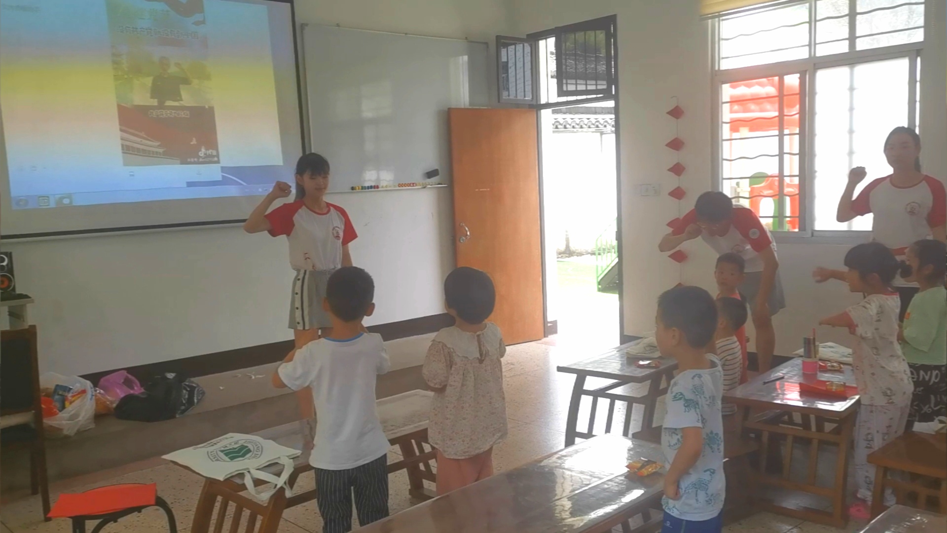 上坦村外出务工人员较多,村子里有大量的留守儿童。寻访团成员在烈士故乡进行了红色感恩活动,与村里的留守儿童一起折“红船”、跳手势舞、唱红歌,开展党史教育,传播红船精神,让孩子们在有趣的活动中学习到红色知识。