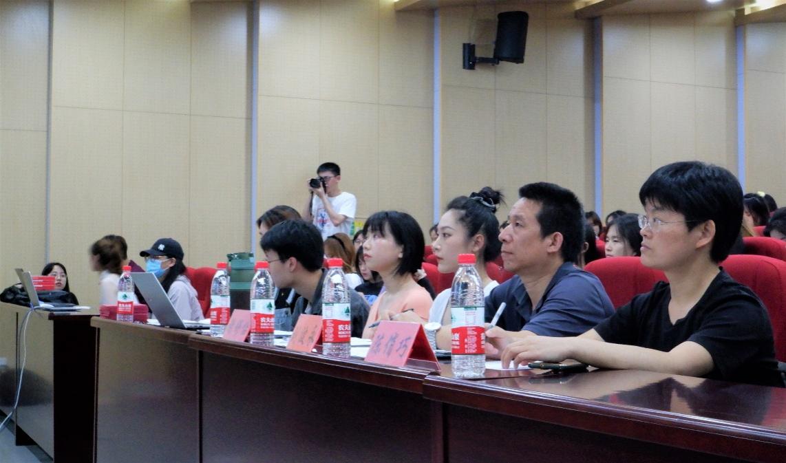 比赛过程中,以六组同学为一环节。每一环节结束,由三位评委老师对参赛选手的表现进行点评。刘波永老师客观评价,他一方面肯定同学们的出色表现,同时也指出参赛同学ppt制作等方面存在的问题;陈俏巧老师对参赛选手的作品内容进行深入剖析,并对部分新颖作品内容与形式给予充分肯定;谢舒怡老师则从自身专业出发,对参赛选手的演讲体态与自信表达提出相关建议,让在场所有同学受益匪浅。