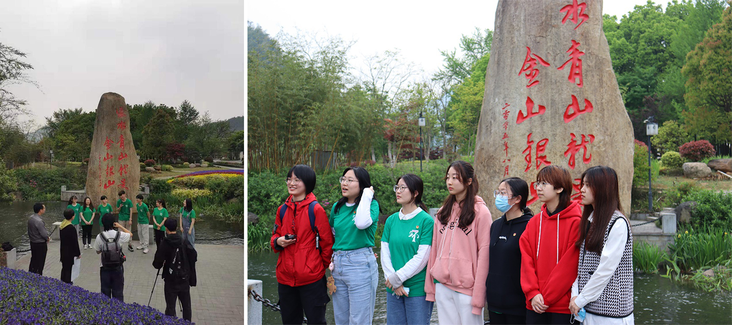 为增强学习的时效性,两位老师围绕《马克思主义基本原理概论》课程的相关知识点,通过对余村的前期认识,提炼问题,提前一周向学生发布小组讨论题,以问题为导向,让同学们带着问题去现场考察,力求获得知行合一的效果。原本安排的2个小时现场调研一再延时,同学们用了近4小时,围绕“是什么强大的力量让环境美、产业兴、百姓富成为了余村的新标志?” “习近平总书记‘两山’理念如何产生、发展、又将如何指导我国‘十四五’的新发展? “有些人认为保护绿水青山的最终目的或首要目标是为了获得金山银山,这一理解正确吗?”“经济发展和生态环境保护在特定时间和范围内确实可能存在矛盾,通过对余村发展历史的了解,大家能否谈谈如何解决经济发展和生态环境保护的矛盾?”“作为当代大学生,我们如何对待生态环境和保护生态环境?”等问题,观看村史展览、与村民交流、走两山绿道等多种方式去寻找答案,通过小组讨论,形成共识,并进行了现场的感言发表。