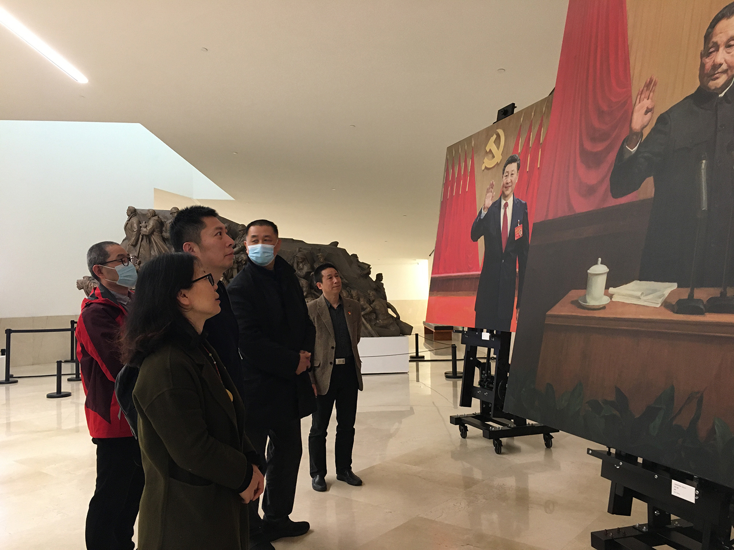 领导班子在邓小平、习近平等一代领导人的画像前合影