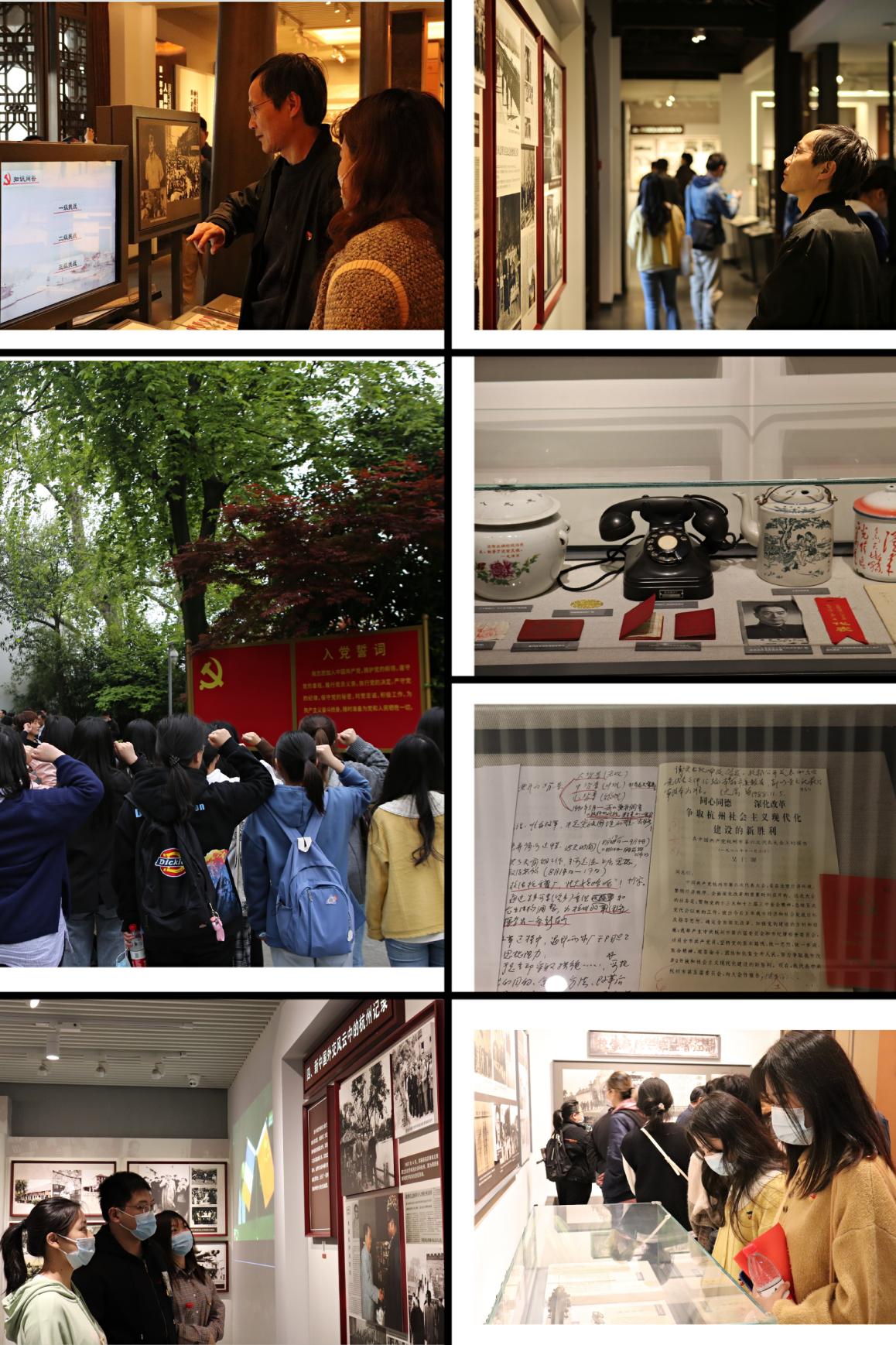 在工作人员的带领下,师生们先后参观了民族独立人民解放的杭州篇章、推进社会主义建设的杭州记忆、中国特色社会主义道路的杭州实践三大主题展厅。一张张珍贵的历史照片、一幕幕可歌可泣的感人故事,再现了杭州地方党组织领导人民进行革命、建设的奋斗史,重温了中国共产党的艰难历程和新中国发展壮大的光辉历史,沧桑走向现代化的发展历程深深地感染了在场的每位师生。