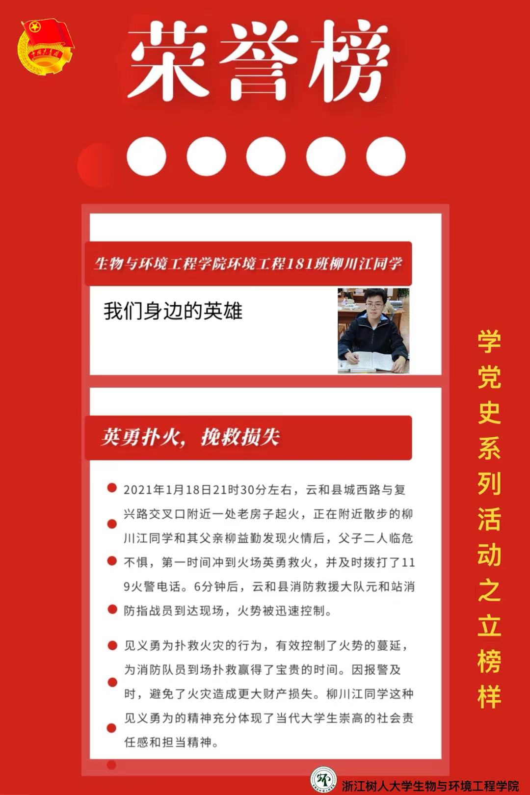 在此,我们号召全校师生向柳川江学习,用我们的实际行动和优异成绩庆祝建党100周年。