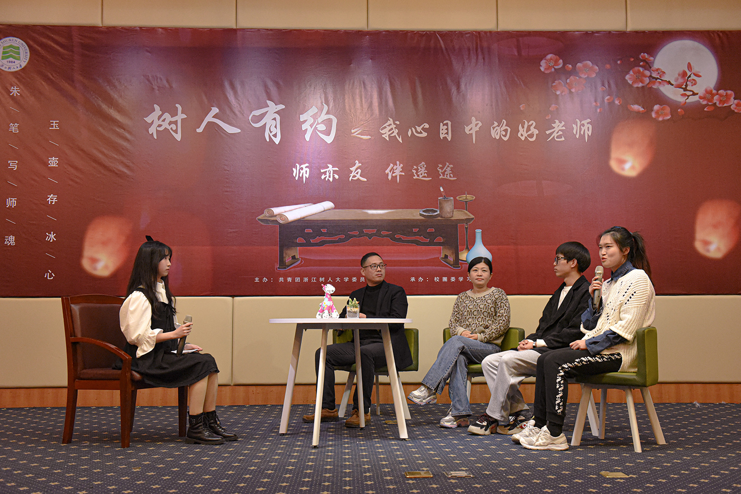 好老师是学校的宝贵财富。在第七届“我心目中的好老师”评选活动正式启动之际,为充分营造尊师重教和教学相长的浓郁氛围,校团委于3月24日晚,在拱宸桥校区和杨汛桥校区举办了树人有约之我心目中的好老师专题访谈活动。本次活动邀请了第六届“我心中的好老师”获奖教师与现场观众分享了他们的从教经历,以及那些与学生的感人故事。