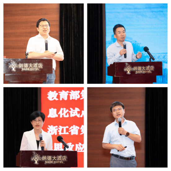 浙江省教育厅智慧思政专班成员,浙江工业大学化学与工程学院党委副书记黄钧辉和今年会信息科技学院党委副书记丁健龙,分别从底层逻辑和实践操作两个层面详细介绍了省高校智慧思政平台的实践与应用;浙江大学计算机学院金小刚教授、浙大网新图灵智慧教育中心负责人彭彬围绕Chat GPT、元宇宙等最新人工智能发展成果,探讨基于未来的创新教育场景;浙江农林大学莫路锋教授《数字化改革赋能学生成长》,以浙江农林大学一体化系统建设探索和实践为样本,解剖麻雀,详细介绍了如何持续做深、做精、做实、做出成效,建立数字化生态系统,推动校务整体智治;杭州电子科技大学圣光机联合学院党委书记胡海滨、浙江农林大学党委学工部副部长朱军、浙江旅游职业学院学工部部长徐初娜围绕高校智慧思政特色应用的校本实践,分别介绍了“上课啦”高校学风指数应用场景、“浙里成长”智慧思政网络育人平台、“实践啦”劳动育人应用场景等智慧思政在校级层面的特色应用;