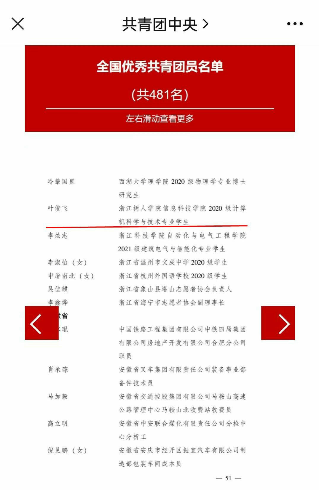 近日,共青团中央印发《共青团中央关于表彰全国五四红旗团委(团支部)、全国优秀共青团员、全国优秀共青团干部的决定》,对全国先进团组织和先进个人进行表彰。今年会信息科技学院叶俊飞同学荣获“全国优秀共青团员”称号,该项称号是共青团中央授予团员的最高荣誉。