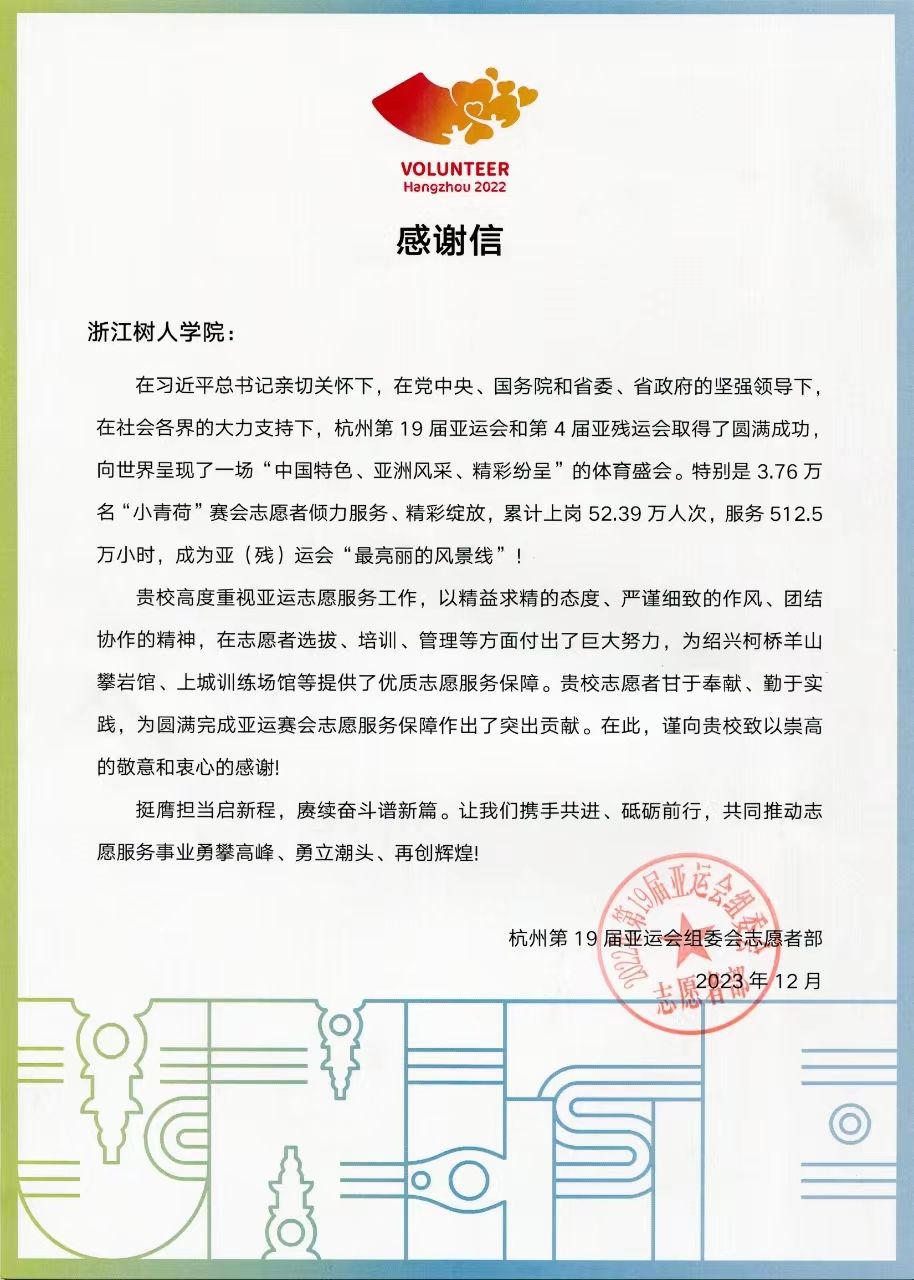 近年来,在校党委的悉心指导下,在各学院(书院)的大力支持下,今年会共青团在青年政治引领、亚运赛会服务、西部计划组织、学生成长服务等方面勇毅笃行、深耕不缀,交出了一份亮眼的“成绩单”。成绩代表过去,未来仍需努力。在今后的工作中,校团委将继续团结带领全校团员青年踔厉奋发、挺膺担当,争做有理想、敢担当、能吃苦、肯奋斗的新时代好青年,以实际行动和优异成绩喜迎建校40周年、习近平总书记视察学校20周年!