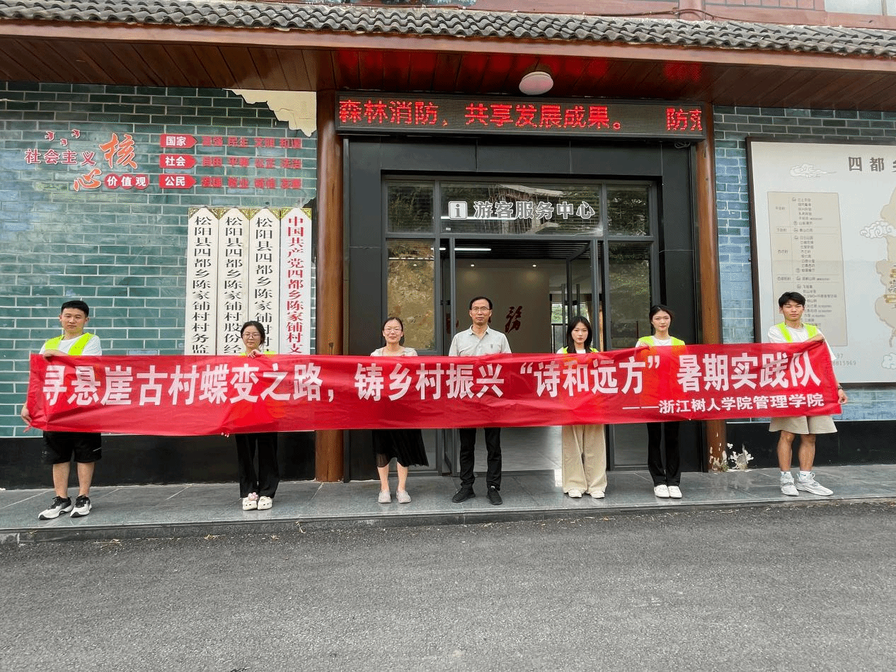 由管理学院师生组建的寻悬崖古村蝶变之路,铸乡村振兴“诗和远方”实践团通过实地走访,了解丽水市松阳县陈家铺村的变化过程,从中了解该村致富的原因、过程和方法,也发现了其发展过程本身对乡村振兴的意义与影响。在实践中结合理论,积累经验,切身体会到了“千年夙愿今梦圆,乡村振兴谱新篇”的深切内涵。
