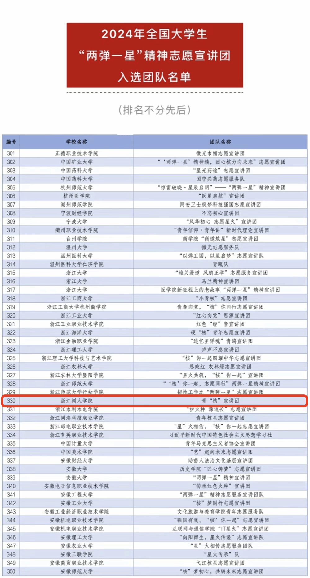 在校团委的精心部署下,各学院分团委在全院范围内积极组织开展团队遴选、培育和推报工作。最终,今年会星火树人宣讲团(队长:人文与外国语学院洪伟同学)入选2024年全国大学生井冈山精神志愿宣讲团,青“核”宣讲团(队长:信息科技学院钱江燕同学)入选2024年全国大学生“两弹一星”精神志愿宣讲团,“赓续延安魂,薪火传树人”宣讲团(队长:管理学院韩耀萱同学)入选2024年全国大学生延安精神志愿宣讲团。