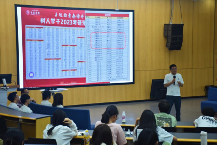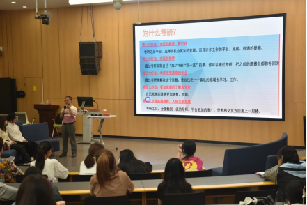 活动第一阶段,学业导师钟泰林教授以“有时选择比努力更重要”为题展开,结合当前社会趋势,为同学们介绍考研的意义及方向选择的重要性,从理论到实践细致指导同学们明确方向、制定科学计划、实现考研梦想。钟教授的讲话直观易懂、贴近实际,让同学们从多个角度领悟考研的意义和价值。陆海飞博士以自身经历分享考研院校选择的关键性,使同学们对考研专业选择方向有了深入的了解。