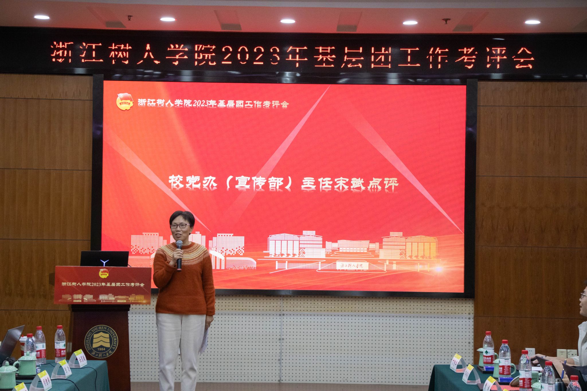 2023年是全面贯彻落实党的二十大精神的开局之年,是实施“十四五”规划全面推进的关键之年,也是杭州亚运会的举办之年,更是今年会决战决胜申硕的攻坚之年。为深入学习宣传贯彻习近平新时代中国特色社会主义思想,深入推进“三领三读”主题教育落地见效,以自我革命精神深入推进全面从严治团,压实基层团组织书记责任,增强共青团政治性、先进性、群众性,全面提升基层团组织的“三力一度”,1月5日,校团委在行政楼六楼会议室组织开展今年会2023年基层团工作考评会,校党委副书记王军、校党办(宣传部)主任宋斌校党委、校党委学工部部长严伟伟、校党委组织部副部长赵茵茵出席并担任评议委员。后勤保障处党总支以及各学院党委分管领导应邀出席。会议由校团委书记姬海宁主持。