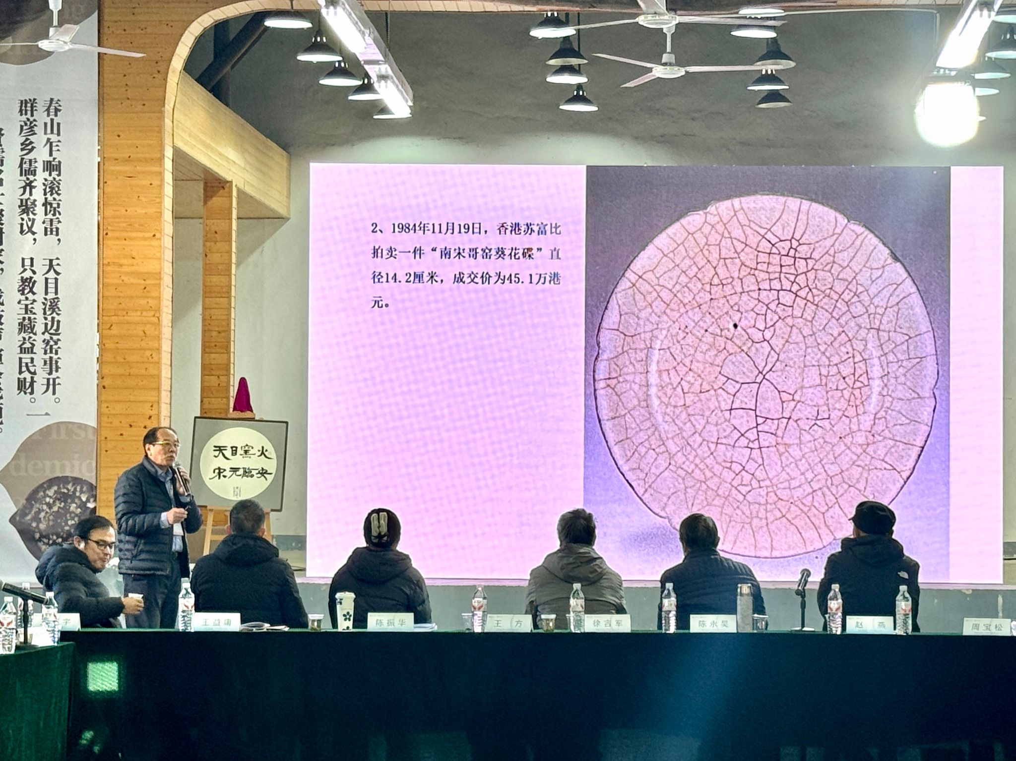 杭州市文物考古所副所长王征宇作《杭州市临安区宋元天目窑址的考古发掘》主题演讲,通过敖干2号、谢家1号、俞家山等窑址的发掘成果,详细阐述了天目窑的窑炉结构、烧制工艺及器物特征,为天目窑断代研究提供坚实支撑。