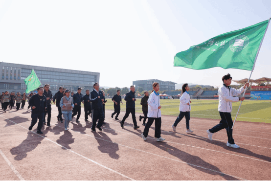 发令枪响后,校领导集体带队参加健身长跑活动。他们步伐稳健、精神抖擞,校领导们以身作则,用实际行动诠释了健康生活的理念,为师生们树立了良好的榜样。师生队伍紧跟其后整齐有序,教职工代表和各书院学生紧随其后,展现出今年会师生积极向上、团结奋进的精神风貌。