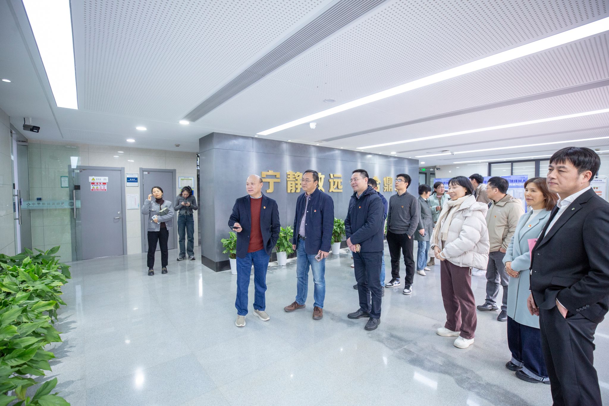 最后,骆荣强副局长一行在刘维屏院长的陪同下参观了交叉科学研究院。刘院长介绍了研究院在环境与健康、绿色技术、智能监测等跨学科领域的最新研究进展与平台建设情况,以及在“双碳”技术、新污染物识别与防控、生态环境大数据分析等方面的科研设备与应用成果。参观过程中,骆荣强副局长一行对学校在学科交叉融合、科研协同创新及服务地方生态环保需求方面所取得的成效给予高度评价,并就未来可能的监测技术合作、数据共享与人才联合培养等方向进行了现场交流。