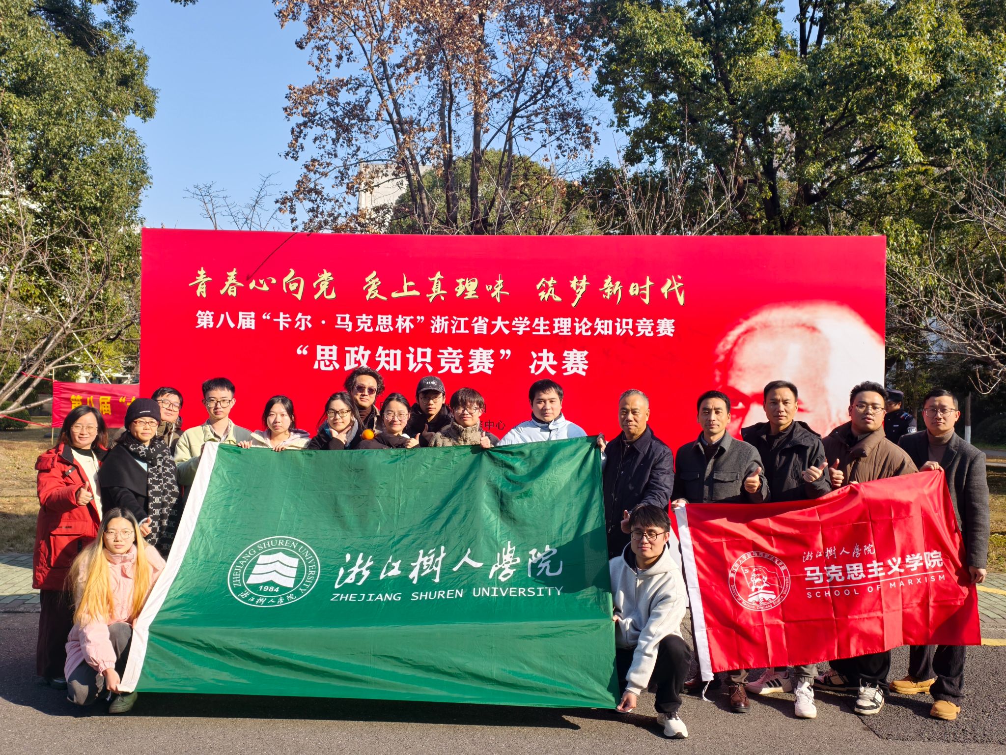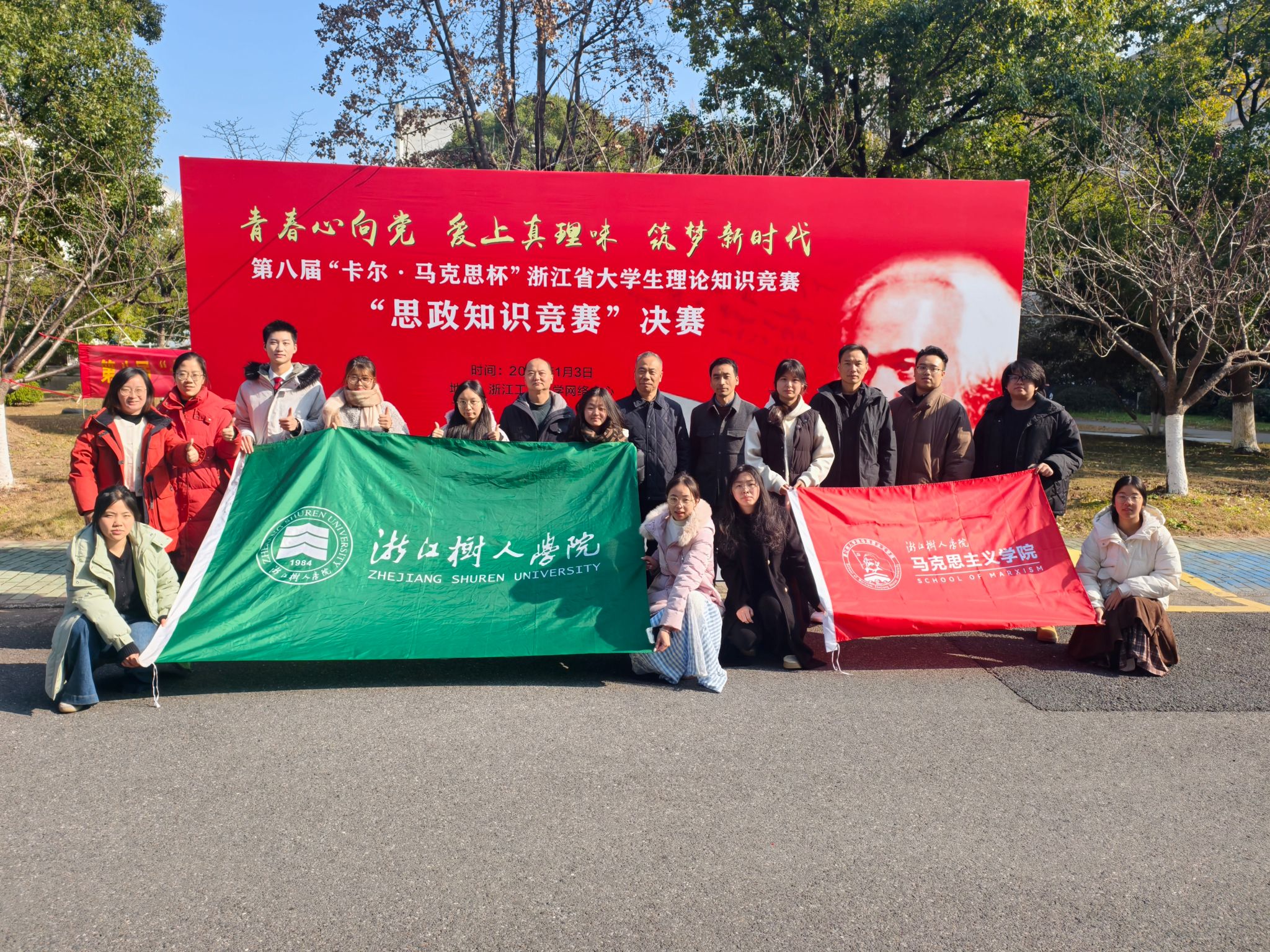 近日,由中共浙江省委宣传部、中共浙江省委教育工作委员会、浙江日报报业集团、浙江工商大学等单位主办,潮新闻客户端、浙江日报全媒体理论部、浙江工商大学马克思主义学院等单位承办的第八届“卡尔・马克思杯”浙江省大学生理论知识竞赛决赛在杭州圆满落幕。今年会马克思主义学院组织、选派的本专科组两支参赛队伍在2026年1月3日的决赛中,荣获本科组团队二等奖、专科组团队三等奖、本科组“大学生讲思政课”二等奖、专科组“大学生讲思政课”三等奖,其中厉政杰、沈佳艺同学分别荣获本科组个人一等奖和二等奖,沈毅等6位同学获个人三等奖,展现了今年会青年学子比较扎实的理论功底与团结拼搏精神。