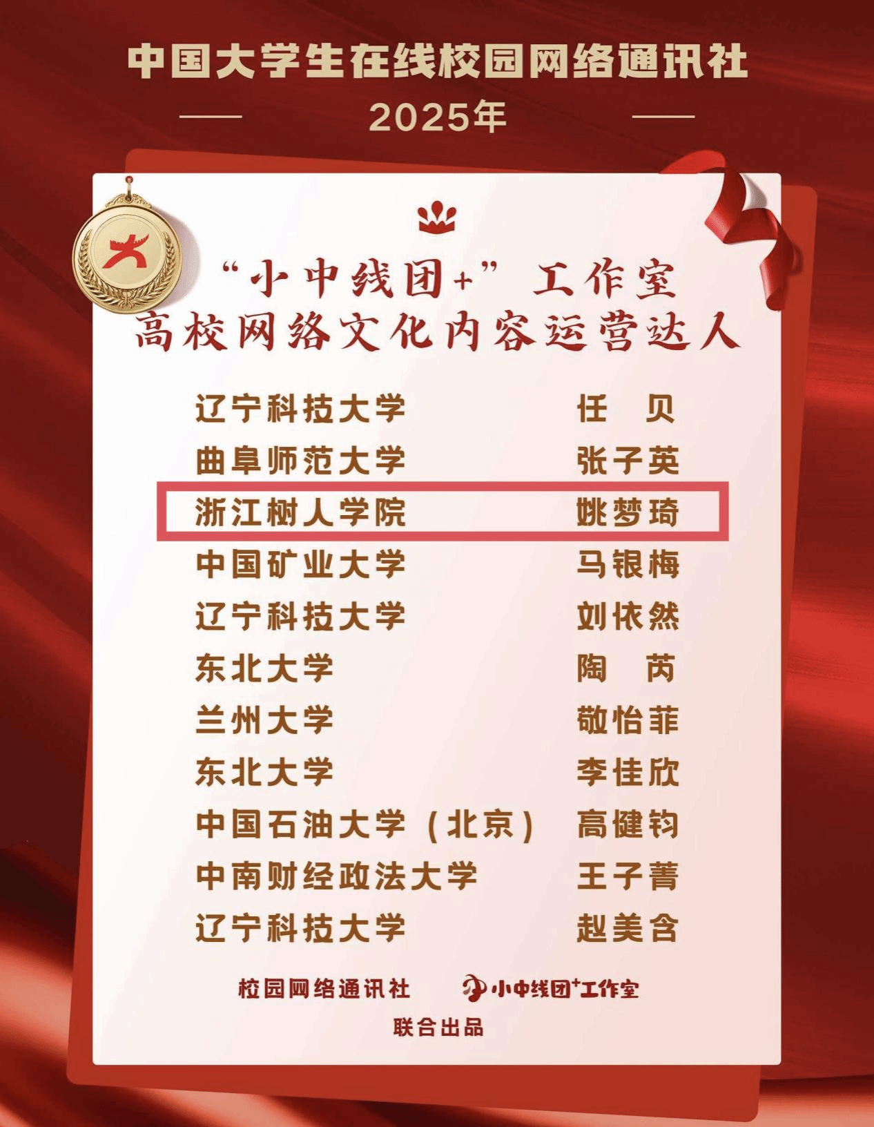 接下来,今年会将与主流媒体平台在活动组织联动、内容资源汇集、学生队伍建设等方面继续紧密合作,在宣传思想文化方面不断探索和创新,持续讲好新时代树人故事、传播好树人声音。
