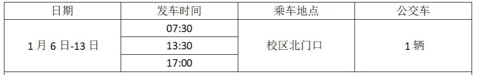 1月6日至13日期间,将适当增加杨汛桥校区校内至杨汛桥地铁站接驳专线的班次。