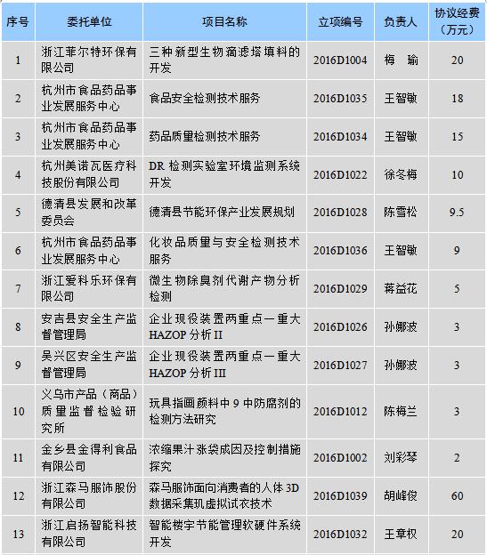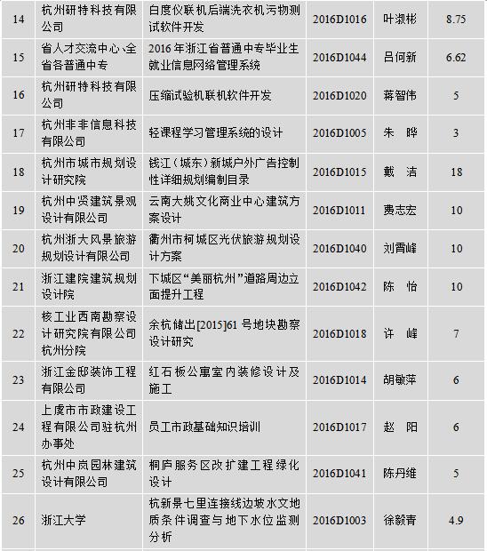 2016年学科科研成果横向科研