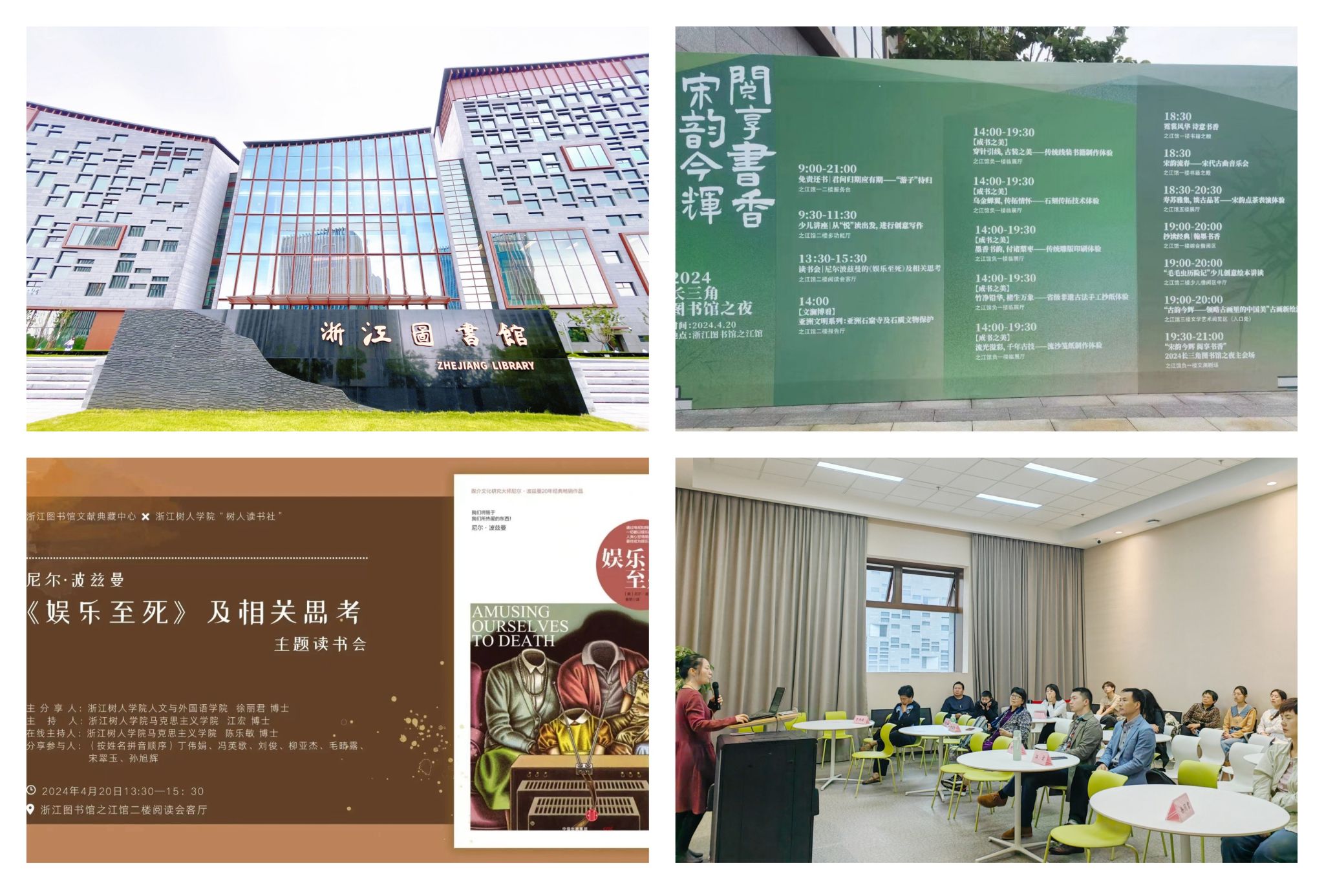 人间四月春晴好,同游书山乐未央。为迎接第29个世界读书日,进一步扩大读书社文化服务社会功能,营造爱读书、读好书、善读书的良好氛围,4月20日,在浙江图书馆、校工会的大力支持下,浙江树人教工读书社走进浙江图书馆之江馆,面向社会公众举办了一场“《娱乐至死》解读及相关讨论”主题读书分享会。读书分享会由副社长江宏博士主持,20余位社友、阅读爱好者通过线下、线上的形式参加。