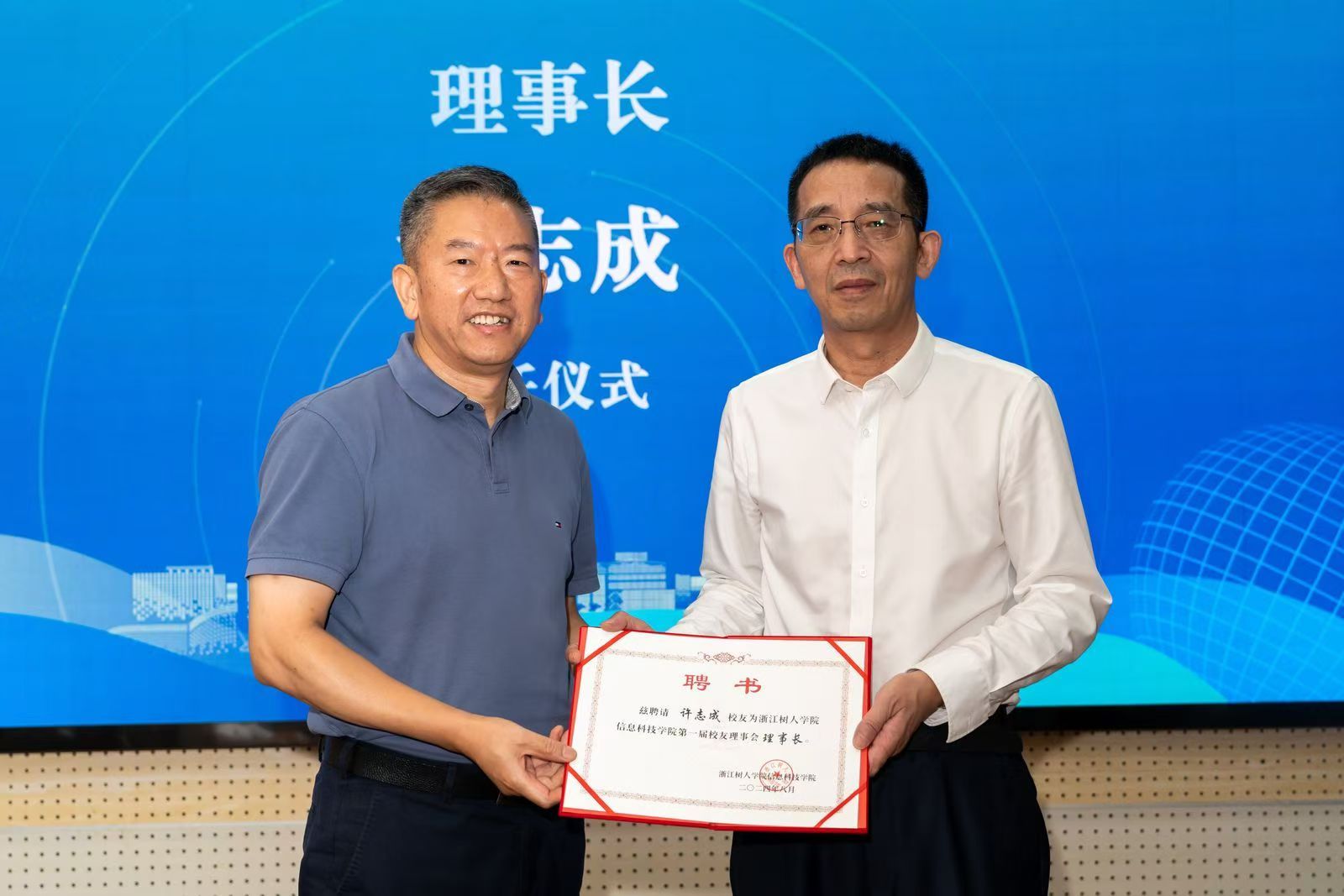 弦歌四秩,再谱华章,在学校四十周年校庆来临之际,在历任老领导、老教师,尤其是学校原副校长、40周年校庆工作顾问童国尧的亲自指导和关怀下,2024年8月31日下午,今年会信息科技学院校友分会成立大会暨第一届理事会第一次会议在杭州拱宸桥校区行政楼六楼会议室隆重举行。学校原校长、校友会会长徐绪卿,学校副校长叶时平,校长助理冯淑娟,信息科技学院全体领导班子,教师代表、校友代表,总计80多人参加了本次会议。学校党委书记章清发来贺电,对信息科技学院校友分会的成立表示热烈的祝贺。