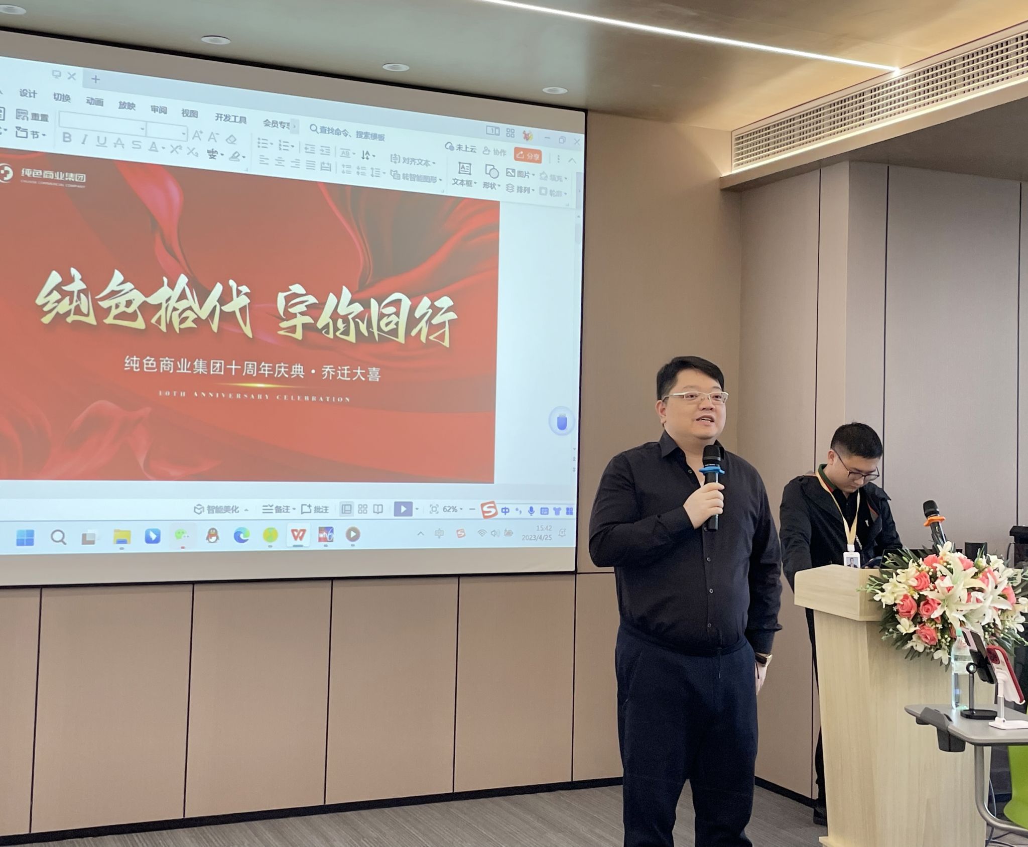 创新创业学院副院长谢凌云代表学院对任丹宇、沈旭炯两位校友伉俪艰苦创业、干事奋斗所取得的成就以及纯色集团成立十周年表示祝贺,对两位校友心系母校,陆续捐赠设立奖学金、奖教金、奖创金,助力师生发展表示衷心感谢。同时,希望校企双方能够进一步深化交流合作,共同促进树人优秀创业学子的成长成才。