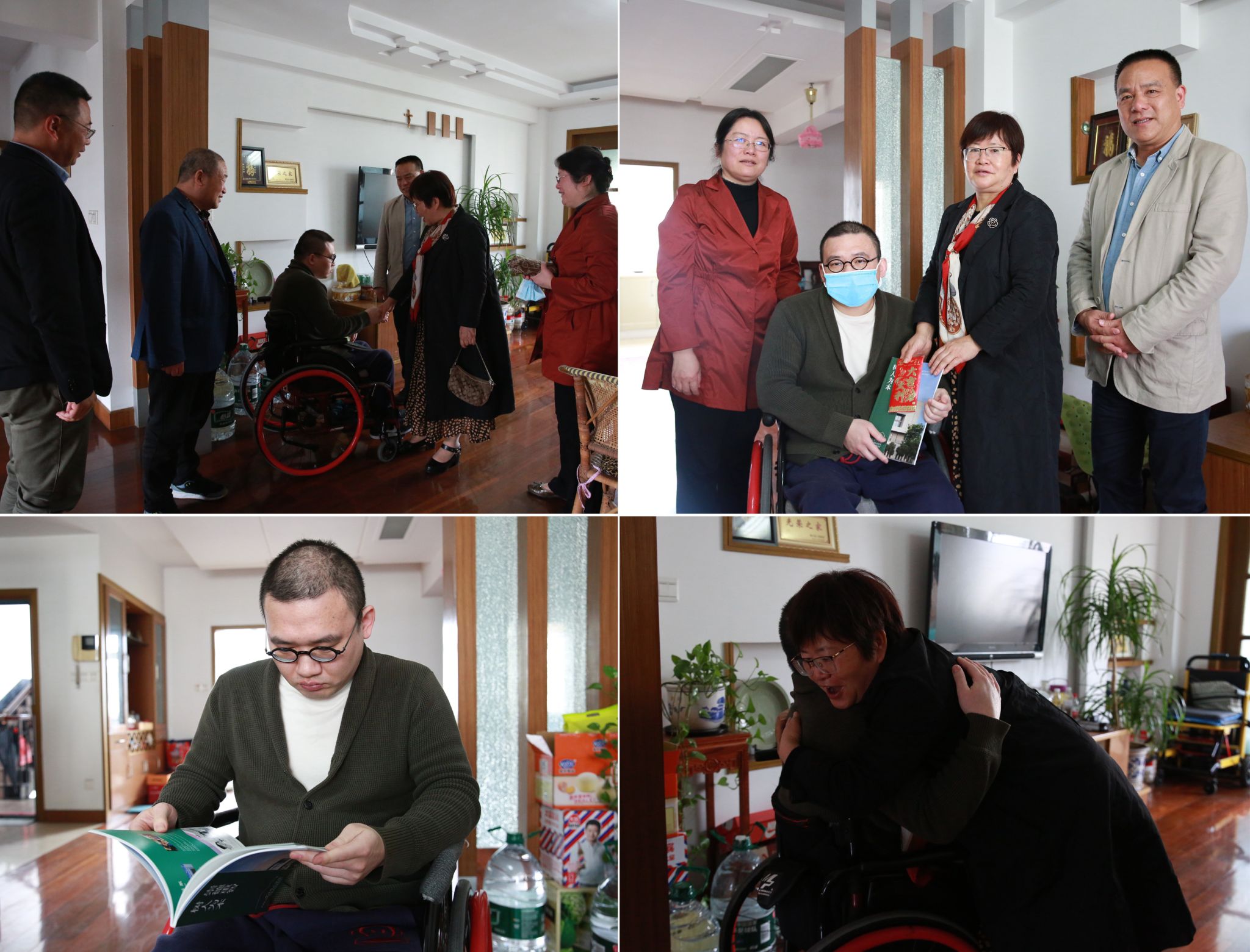 在慈溪,陆桂芹代表学校亲切看望了今年会教职工潘施宇,带去了学校的美好祝福并送去了慰问品、慰问金。在潘施宇家里,陆桂芹与他进行了亲切的交谈,详细询问近期的身体及生活状况,希望他坚定生活信心,保持健康乐观心态;鼓励他在积极配合康复训练的同时结合自身专业,努力开展专业学习和学术研究;期盼通过家校的共同努力,潘施宇能尽快再次融入树人大家庭。并要求相关部门和学院进一步关注关爱潘老师的身体和生活情况,主动做好帮扶工作,及时帮助他解决生活工作中遇到的困难和问题。随行人员与潘施宇一起分享了近几年学校的发展变化。潘施宇及他父母表达了对学校关心关爱的感激之情。