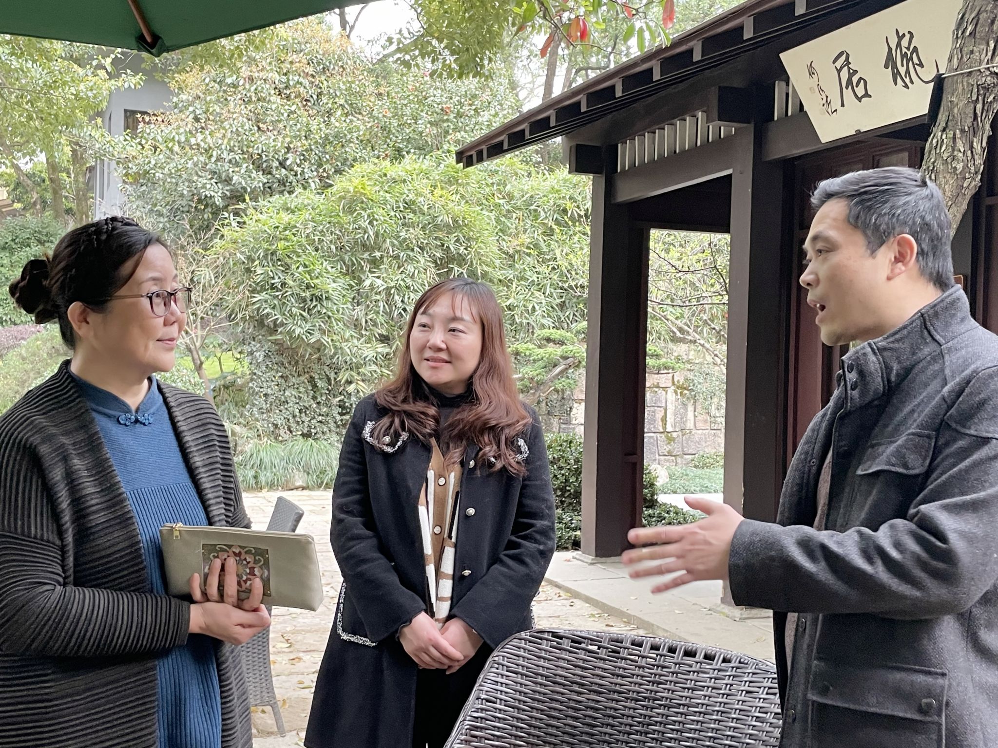 随后,老师们拾级而上,来到“中茶博”国际茶文化交流中心,与包静校友就双创教育、校友导师、文化育人、四十周年校庆筹备等方面内容进行了深入交流和讨论。包静校友表示,将不遗余力支持母校建设,助力学弟学妹成长发展。