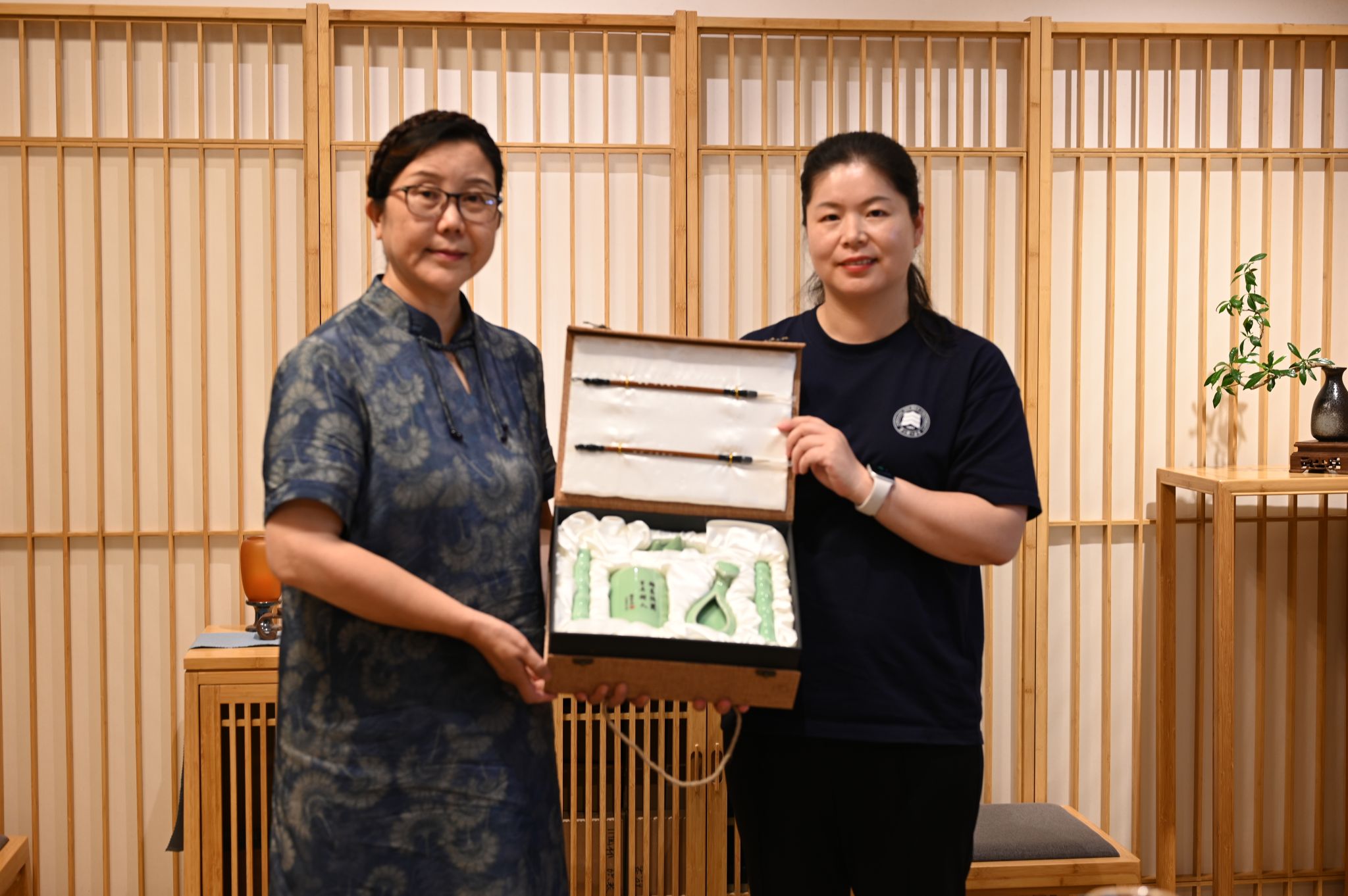 最后,陈老师对包静馆长的热情招待表示感谢,还向她赠送了纪念品,并欢迎她常回母校看看。
