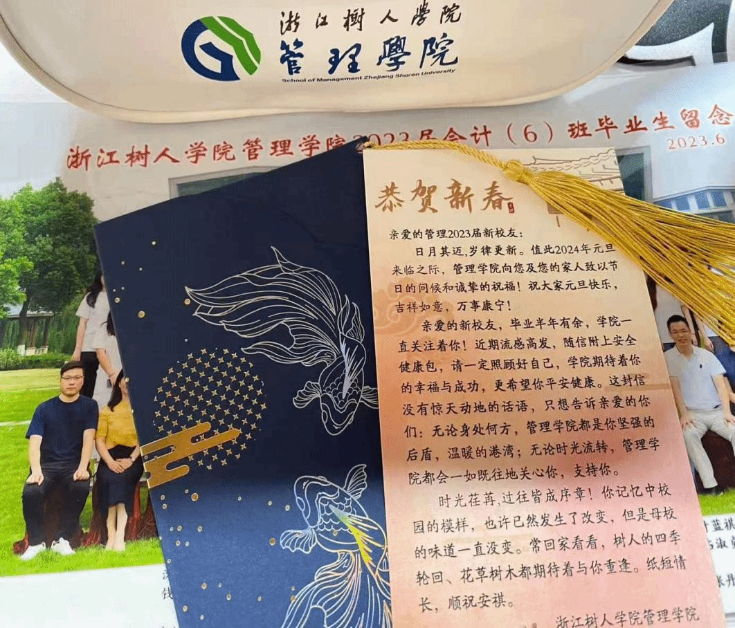 收到新年礼包后,不少毕业生忍不住在朋友圈晒图,纷纷点赞“很温暖”“很贴心”。2023届市场营销毕业生袁玮濛说:“毕业的半年时间里,无数次回想起在学校学习生活的场景,感叹学生时代的美好。当收到来自管院精心准备的“安全健康包”时,仿佛自己又成了那个被母校时刻惦记的孩子,分外感动。感谢母校的关怀与惦记,在寒冷的冬天将温暖送到每一个管院学子的手中。祝愿母校桃李满园,越来越好!”专升本录取到本校的2023届会计专业毕业生王寿妍说:“ 这份礼物不仅令我惊喜,也让我感受到了母校对我们的关爱和期望。防护口罩、消毒酒精等的爱心健康包在凛冽的冬日为我们树人学子送去浓浓暖意。我会倍加珍惜这份礼物,用实际行动来回应母校的信任和鼓励。我深感荣幸能在这所学校就读,感谢您赠予我们这份珍贵的礼物。”