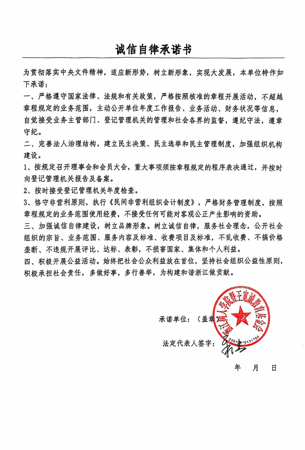 今年会暨王宽诚教育基金会诚信自律承诺书