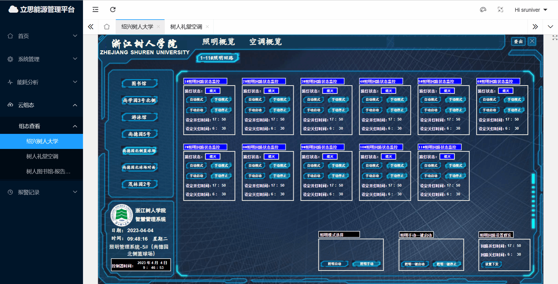 同时,对学校建筑的空调进行统筹管理,可以远程对分体式空调和 VRV、VRA 空调等,对各个空调机组实现开关、温控,减少能耗浪费,擦亮节能降耗原色。
