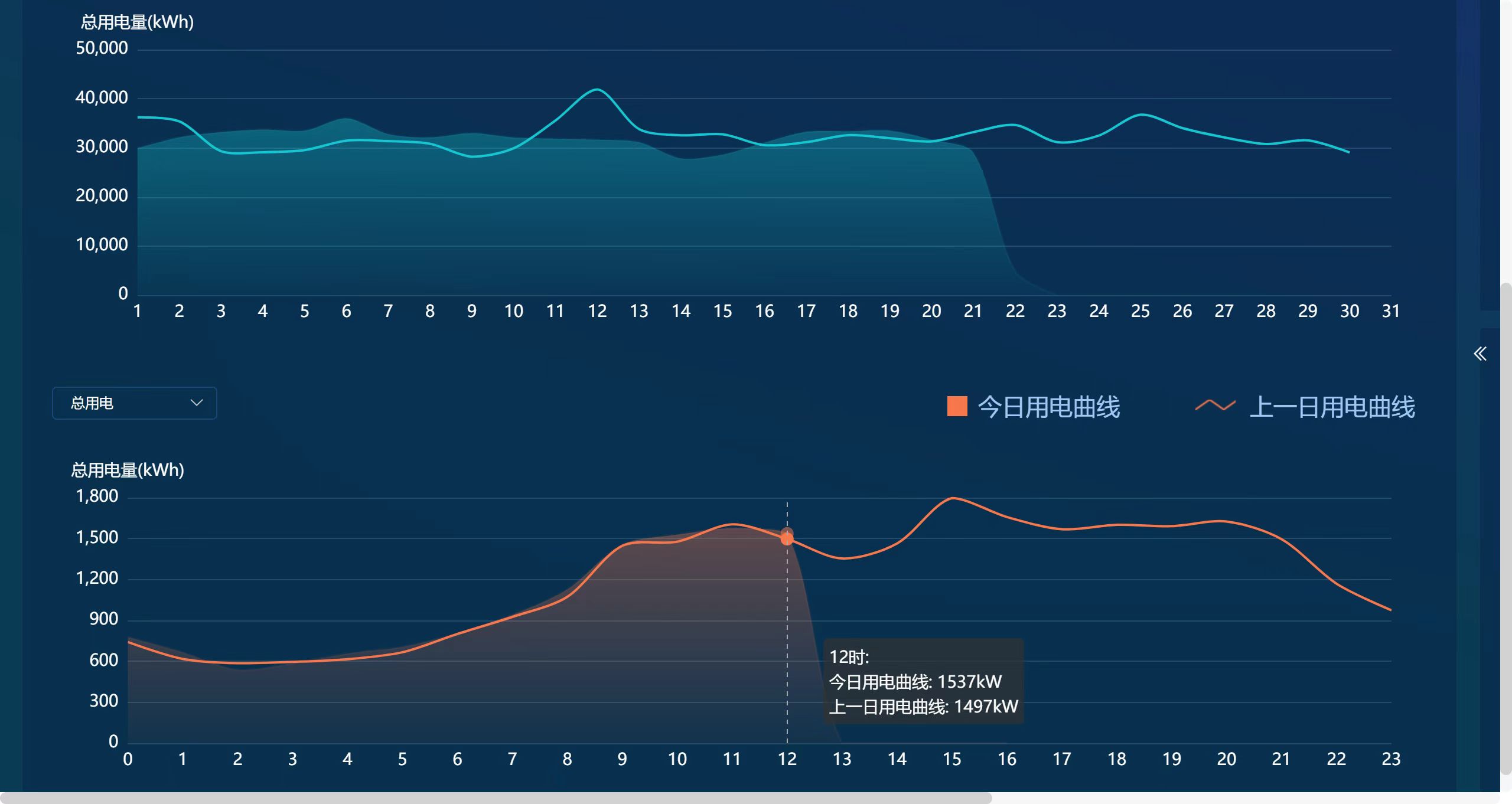 建成的能耗监控系统针对学校建筑特点,通过对各分项水、电能数据的合理采集,准确地掌握建筑用水、用电消耗状况,有效指导能源管理,通过建立能耗监控系统,实现各建筑能耗数据的采集、接收、处理、展示,还可直观的展示能源管理平台功能界面以及各重点用能单位实时能耗、历史能耗数据等。