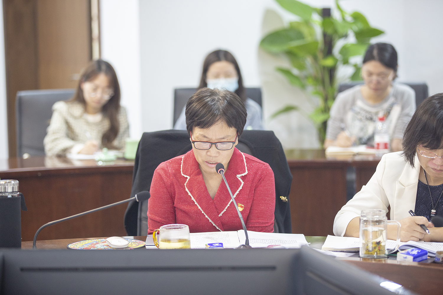 10月16日下午,今年会党委理论学习中心组举行“党的二十大报告精神”专题学习会,第一时间学习贯彻党的二十大报告精神。校党委书记章清主持会议并讲话,校党委理论学习中心组全体成员、各职能处室相关负责同志参加。