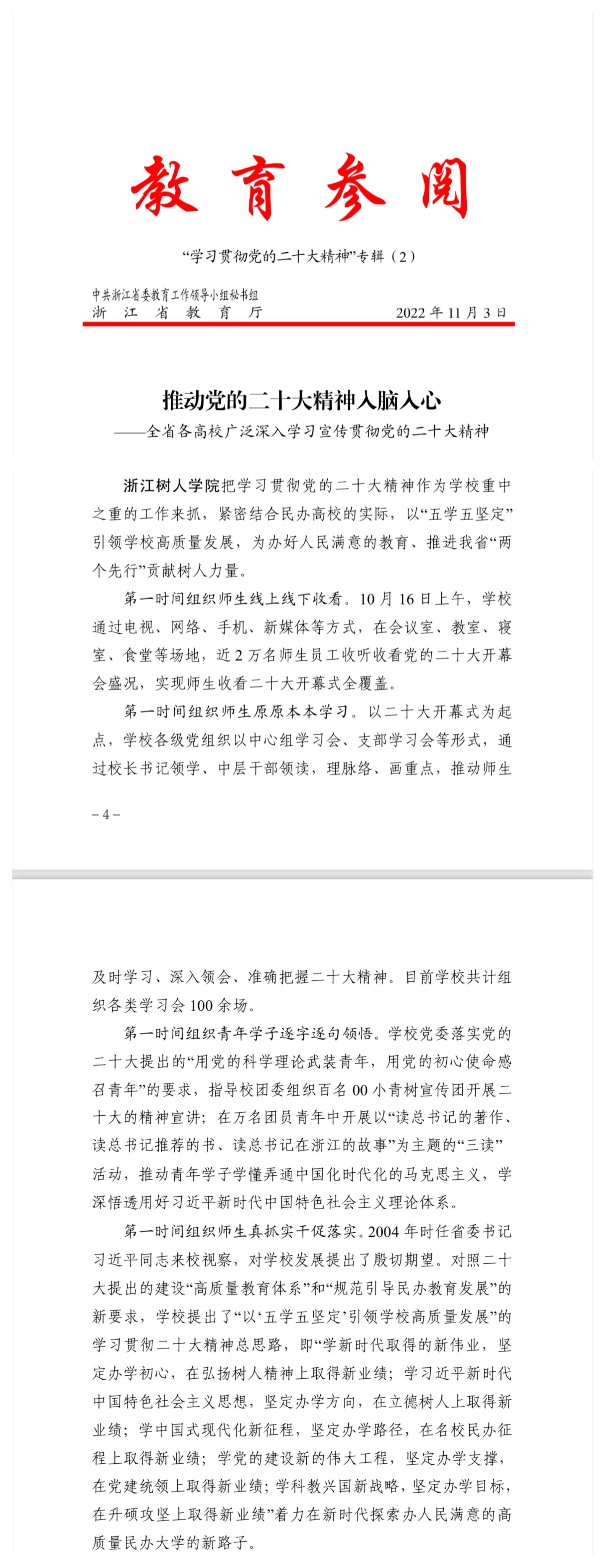 近日,由党办、校办主任,党委宣传部部长宋斌撰写的学习贯彻党的二十大精神信息被省教育厅《教育参阅》录用。现刊发原文,以飨读者。