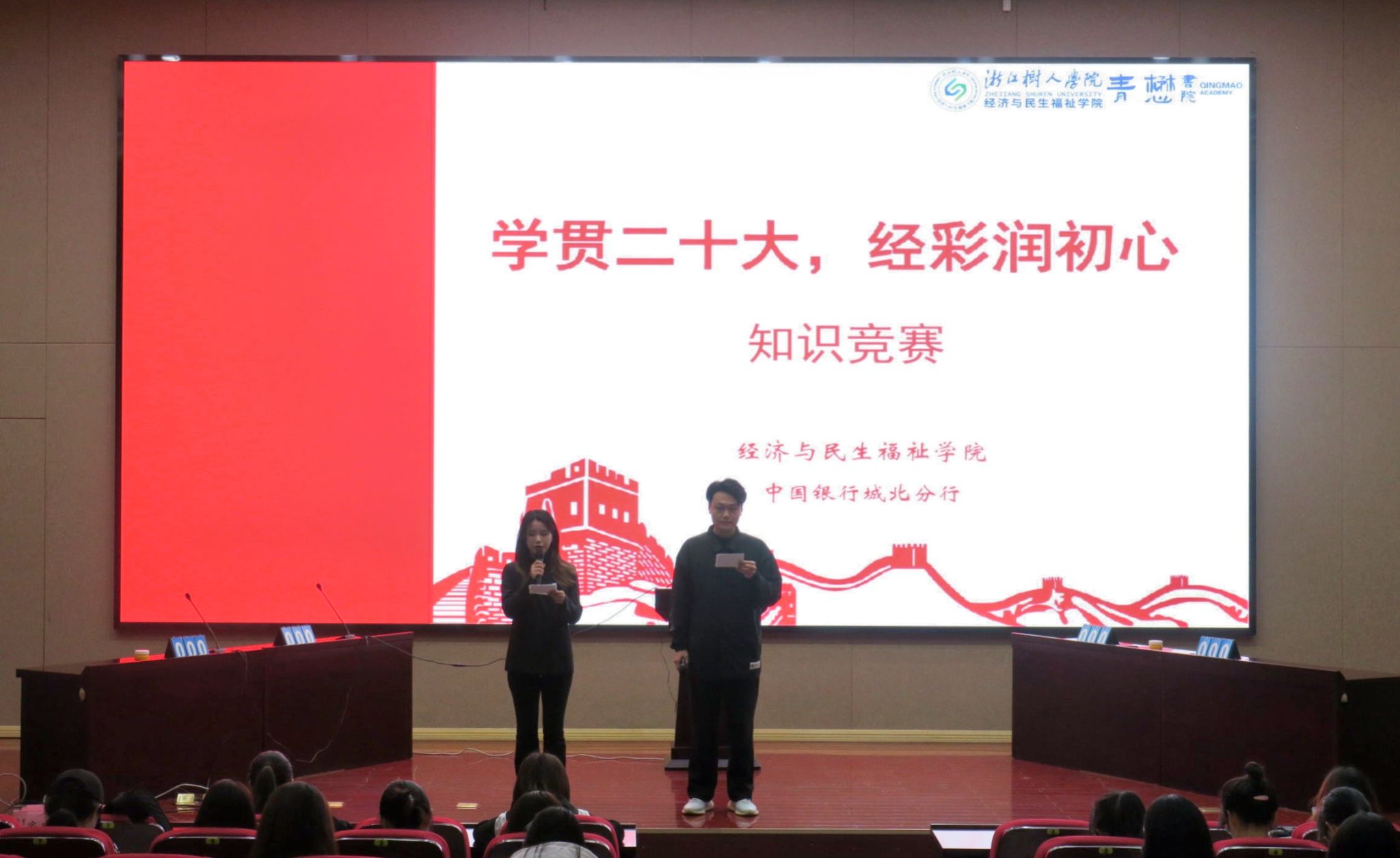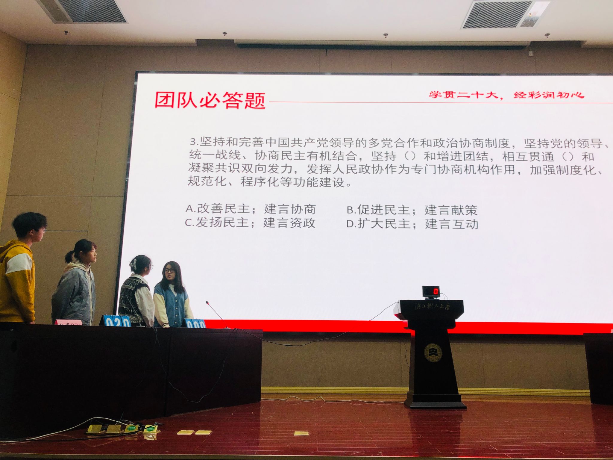 为深入贯彻学习党的二十大精神,引导广大学生深入学习党的二十大报告,认真领悟党的二十大提出的新思想新论断、作出的新部署新要求,推动党的二十大精神广泛深入为广大学生所了解和掌握,同时将二十大精神的学习与争做时代好青年相结合,将校纪校规等内容融入竞赛中,经济与民生福祉学院于11月23日在报告厅207举办“学贯二十大,经彩润初心”大型知识竞赛活动。