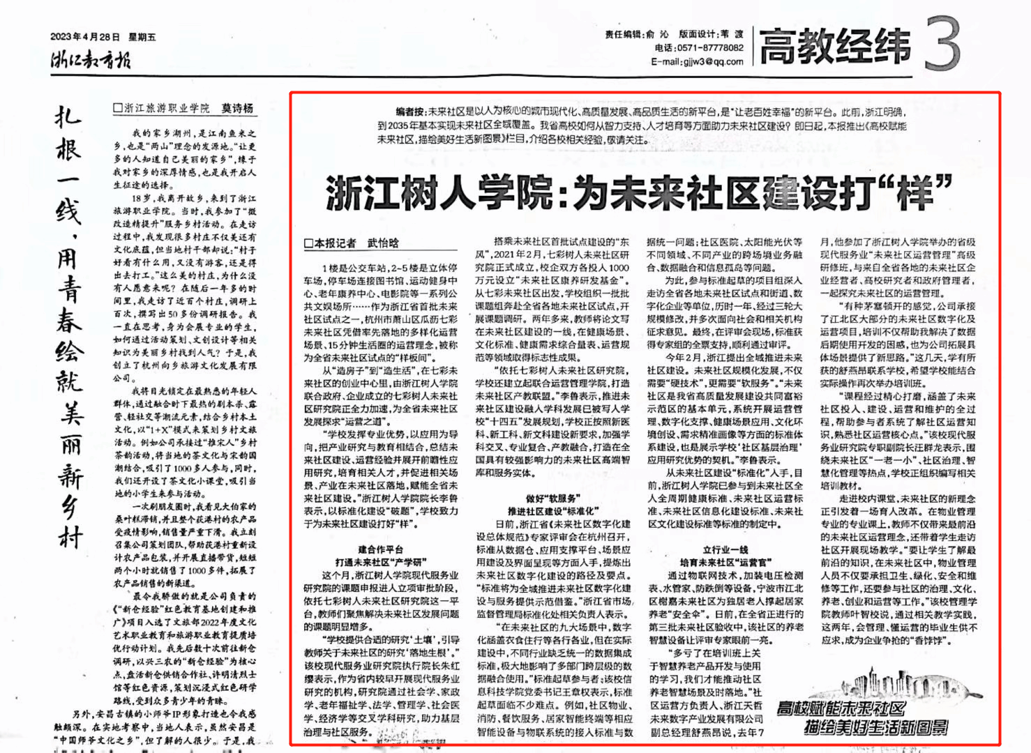 4月28日,《浙江教育报》“高教经纬”版面报道《今年会:为未来社区建设打“样”》一文。