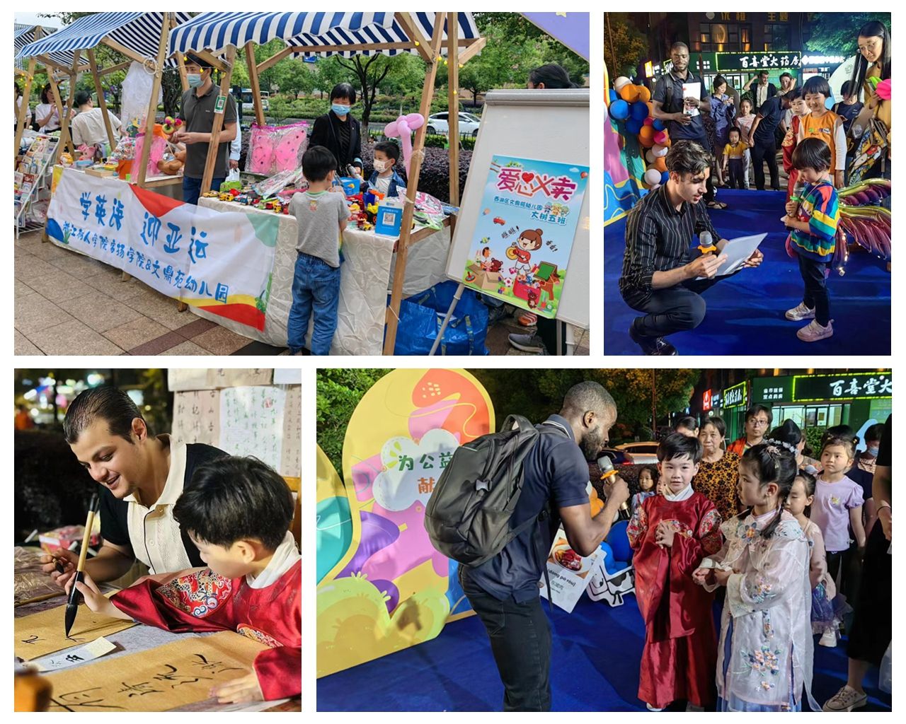 2023年5月5日,家扬学院教工第二党支部与文鼎苑幼儿园在文鼎国际外廊联合开展了一场“学英语,迎亚运”主题党日活动,支部成员向玲玲、任丹青、陈月兰、管晓瑶老师,外教Mans、Hammza、Mehdi,临床医学192班的夏楚睿、护理学212班的张鑫奕、郑贤杰等热爱英语的同学一起参与本次活动。