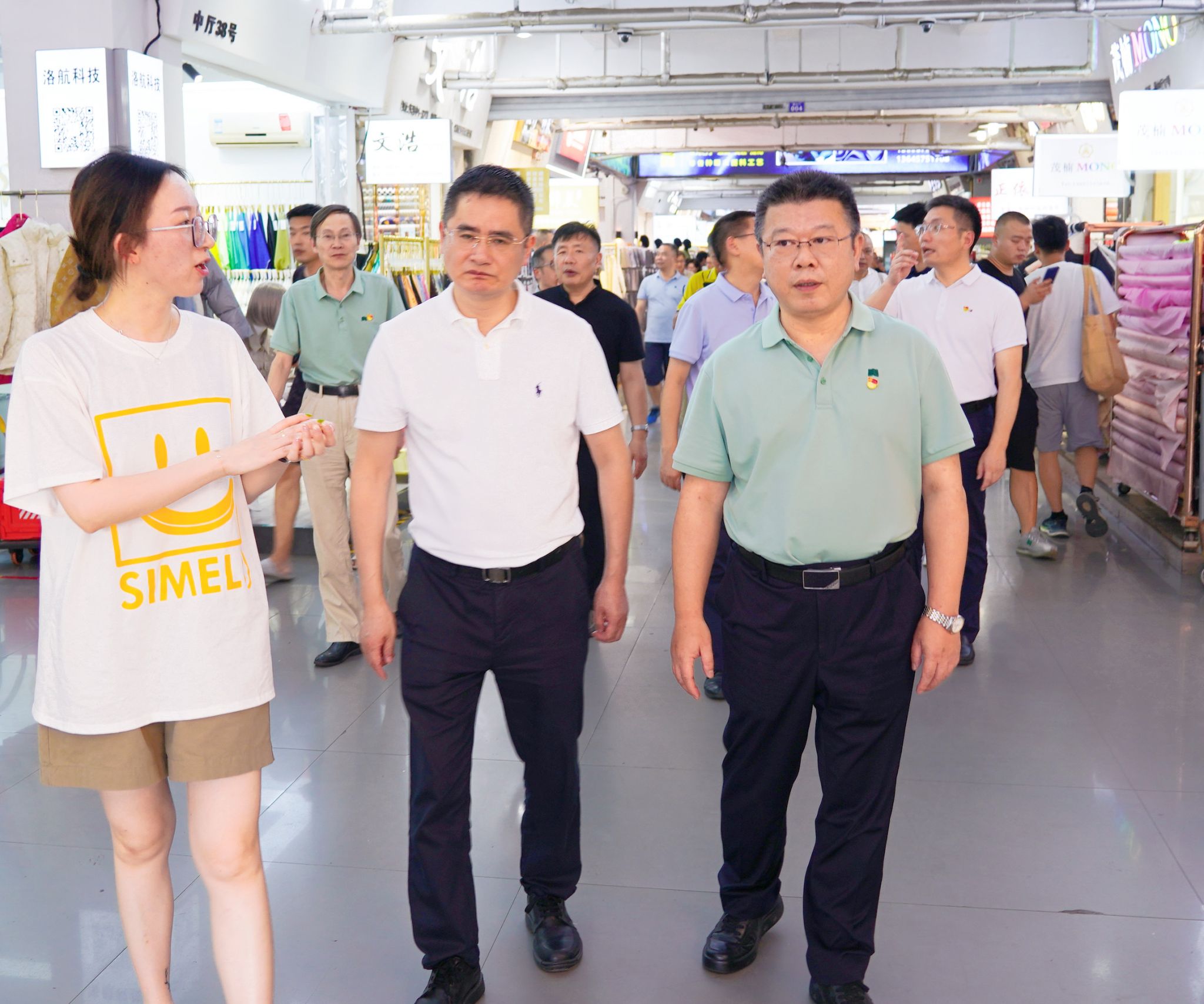 在柯桥区中国轻纺城党工委副书记、建管委主任王峻峰的陪同下,全体校领导、中层干部先后考察了中国轻纺城展示中心、中国轻纺城国际面料采购中心、水韵纺都特色产业样板风貌区,通过实地走访详细了解了中国轻纺城的发展历史、柯桥区纺织业的发展情况以及中国轻纺城国际面料采购中心的市场运营情况。