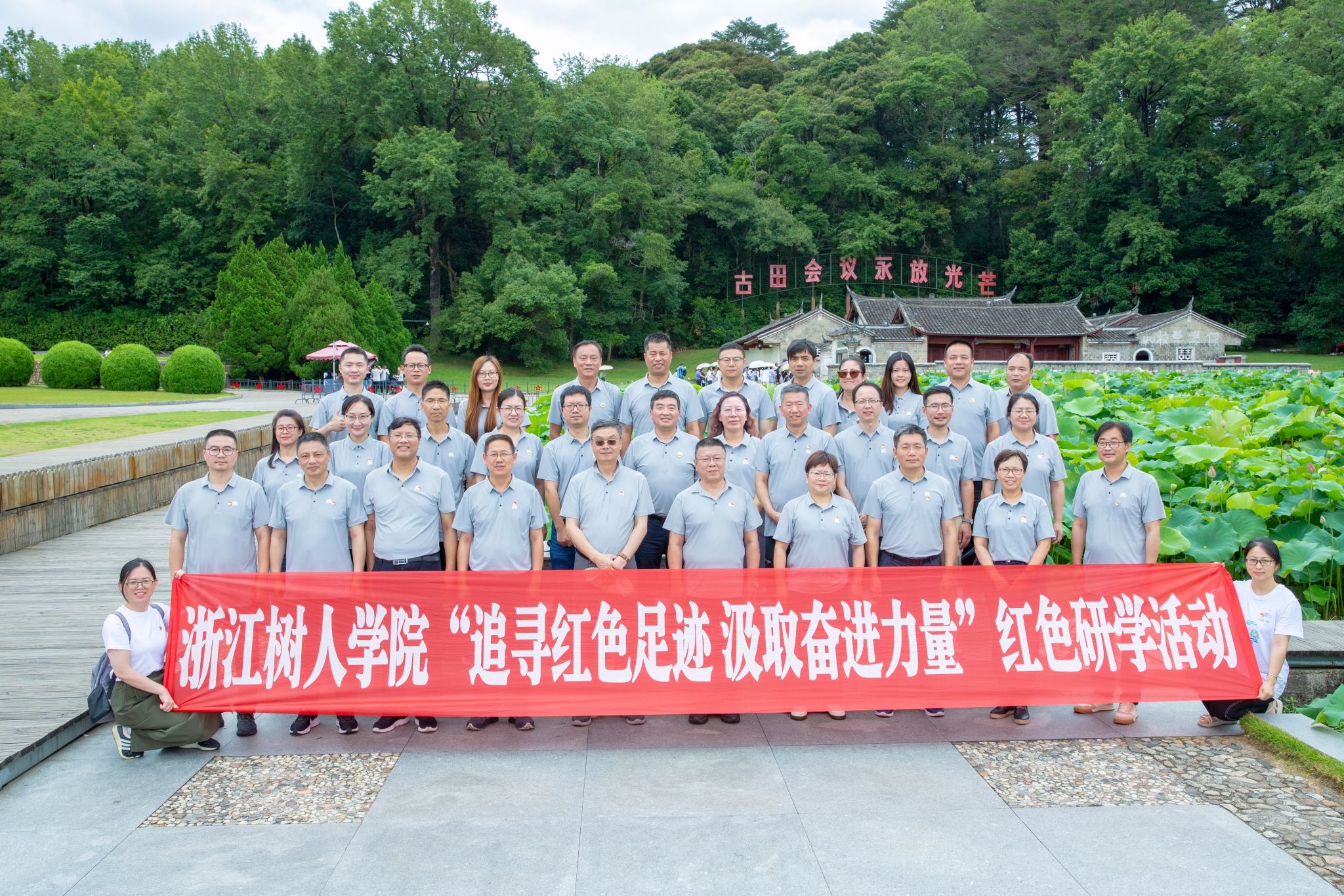 为深入开展学习贯彻习近平新时代中国特色社会主义思想主题教育,教育引导领导干部进一步坚定理想信念,强化党性观念,增强宗旨意识,厚植家国情怀,提升干事创业精气神,今年会于7月17日至21日在福建龙岩开展红色研学活动。本次研学活动由校长李鲁、校党委书记章清带队,校领导班子成员、树人学者以及省级荣誉获得者代表等共计35人参加了活动。