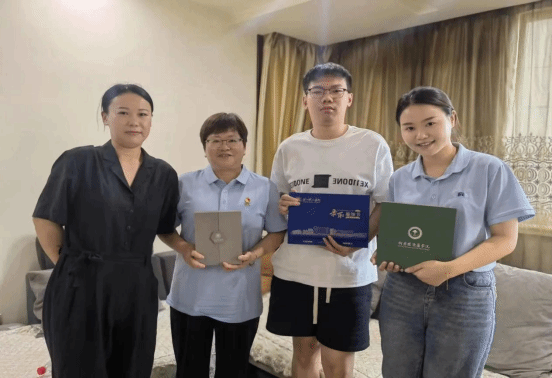 7月22日,校纪委书记陆桂芹率队,校办常务副主任杨礼雕陪同,分别到访远在温州龙港市的2023级护理学陈美伊同学、石华键同学家里,为他们送去录取通知书。