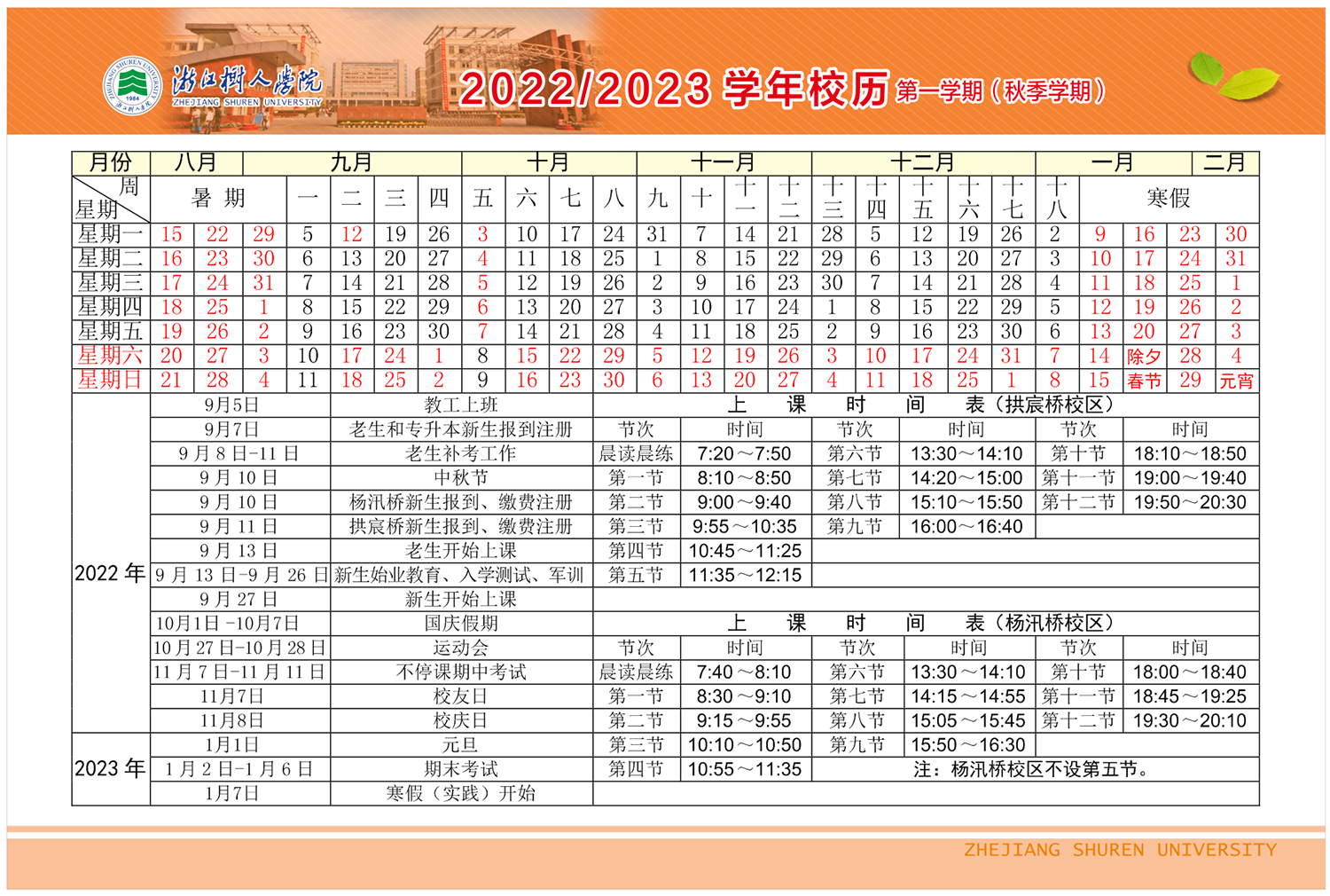 今年会2022—2023学年校历