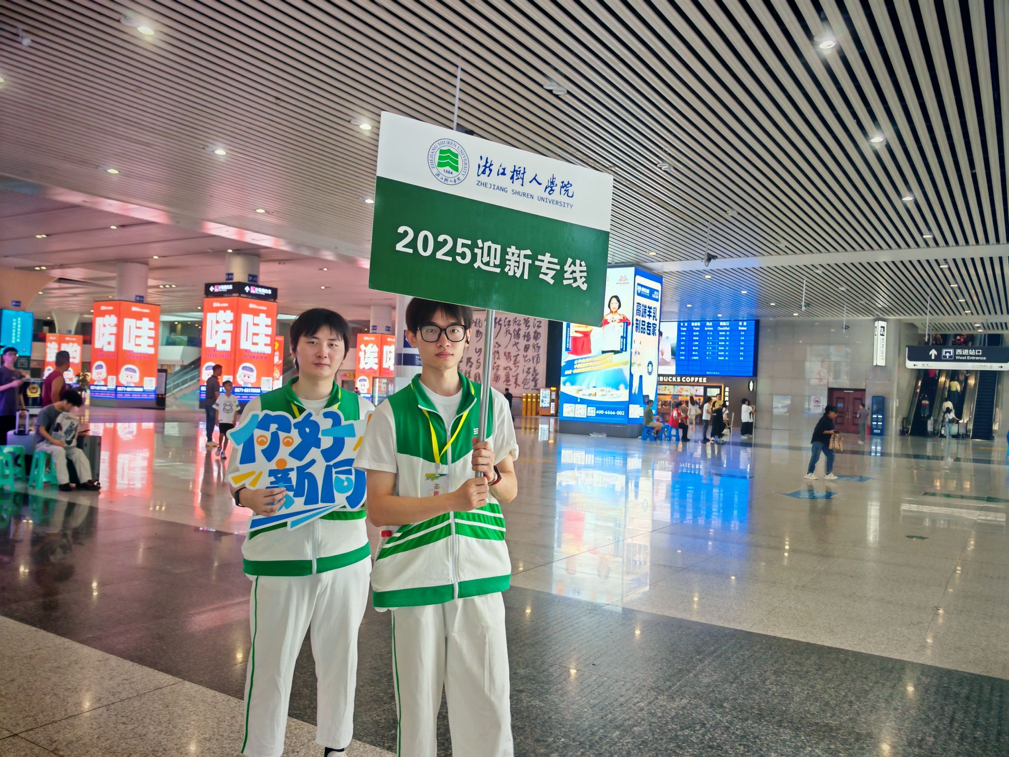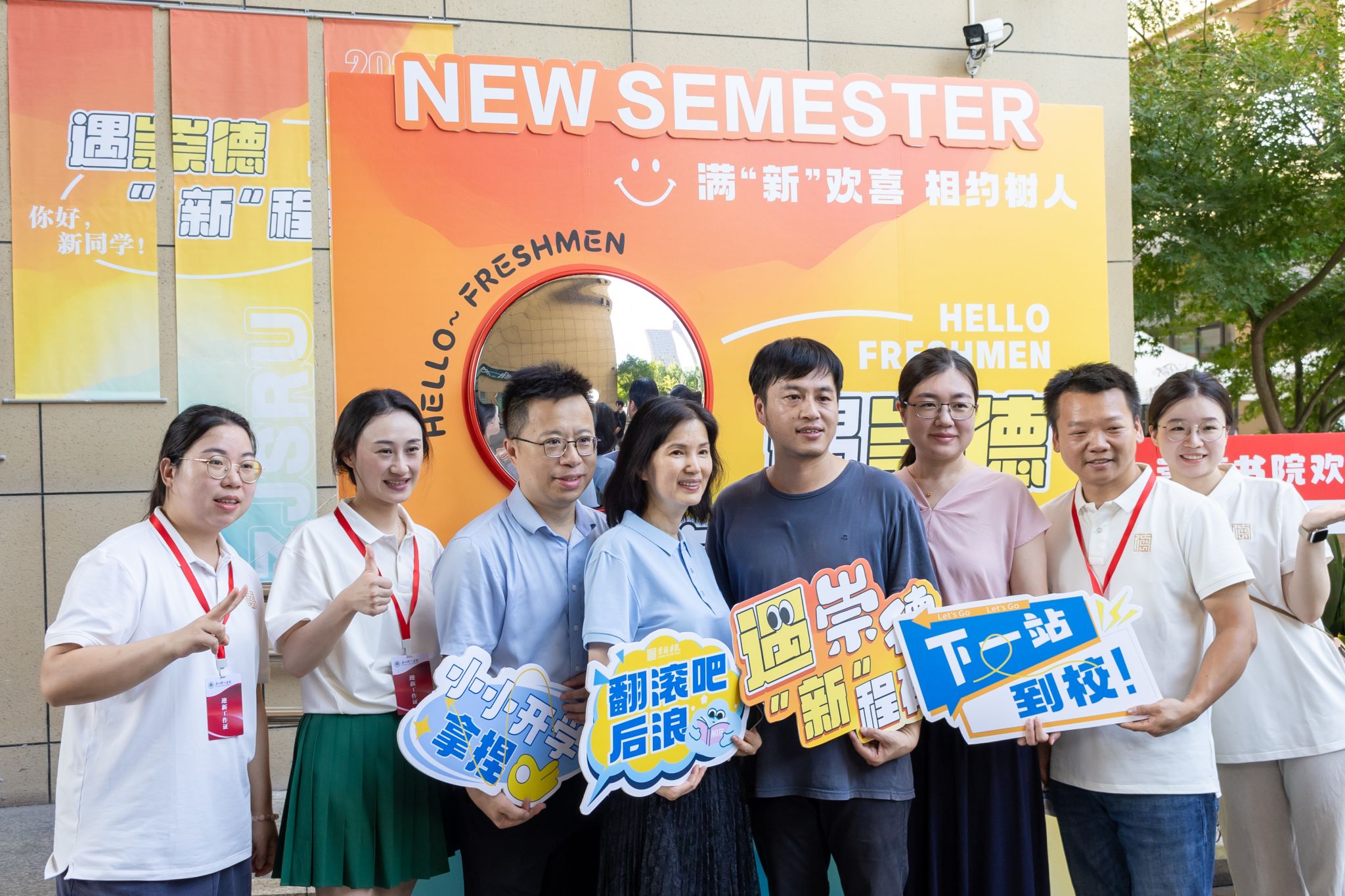 清晨伊始,迎新工作人员与志愿者们便奔赴高铁站等各个接待站地点,以热情的指引和贴心的服务迎接新生与家长,保障从车站到校园的“最后一公里”安心抵达。