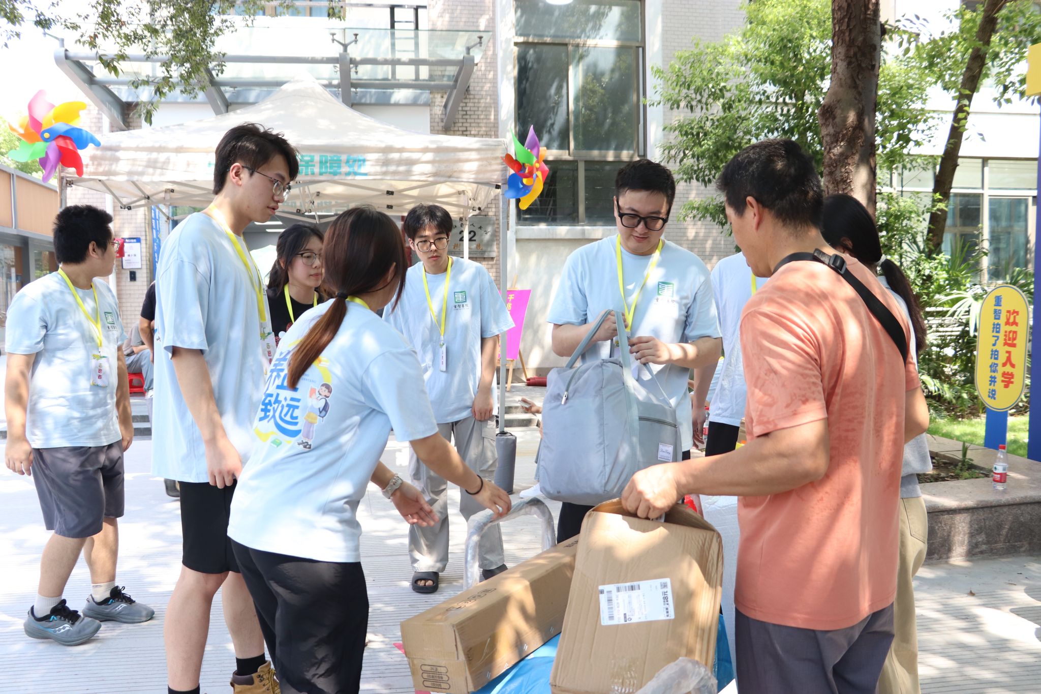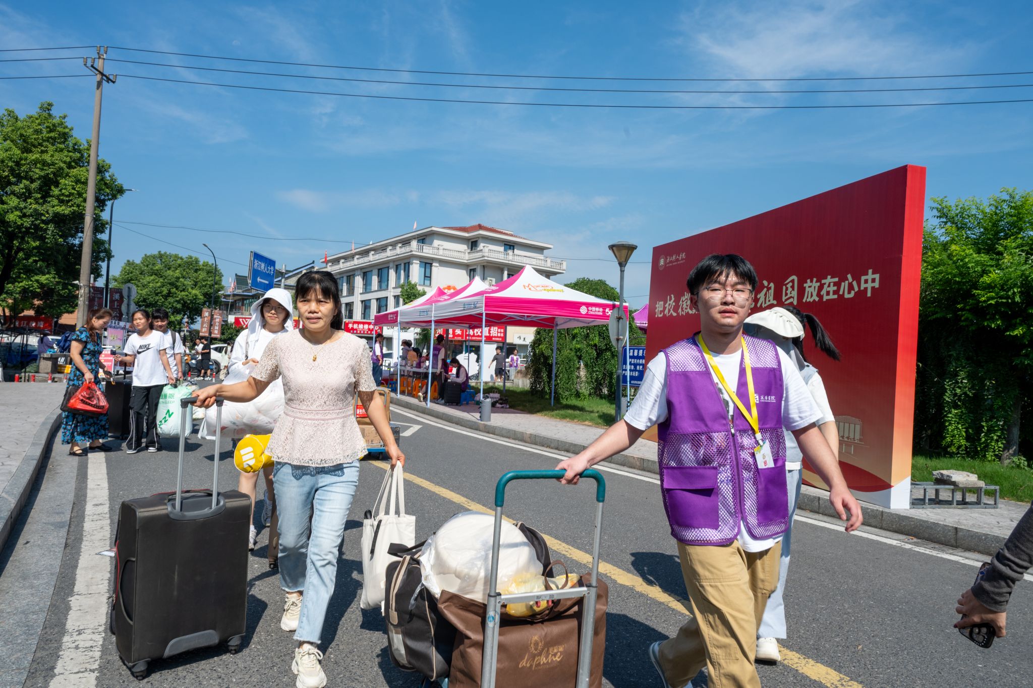 校园内,志愿者们步履不停,或耐心引导,或搬运行李,微笑成为每一位志愿者共同的“名片”,也让整个报到现场秩序井然、温情流动,定格初次相遇的喜悦与期待。