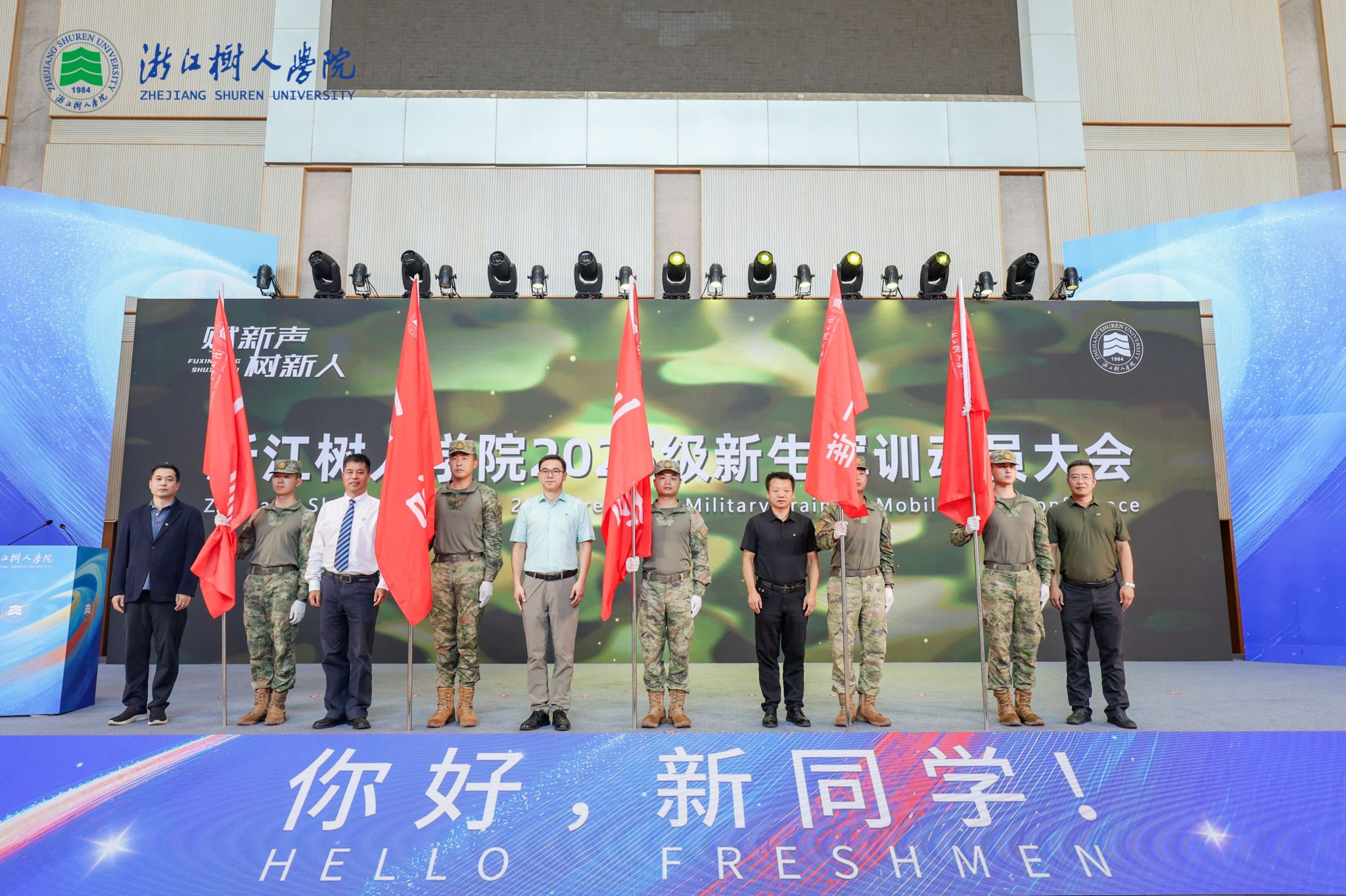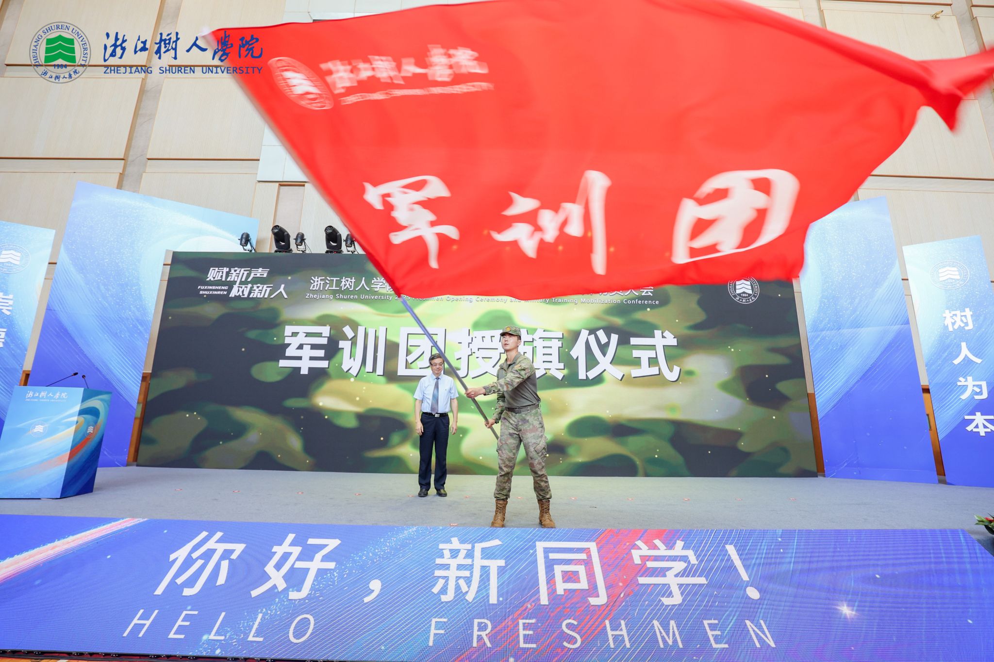 军训教官们展示了刚劲有力的军体拳表演,瞬间点燃全场热情。随后,校领导为军训团授团旗,各部门、书院领导为军训团授营旗连旗。随着集结号的吹响,2025级新生军训生活正式拉开帷幕。
